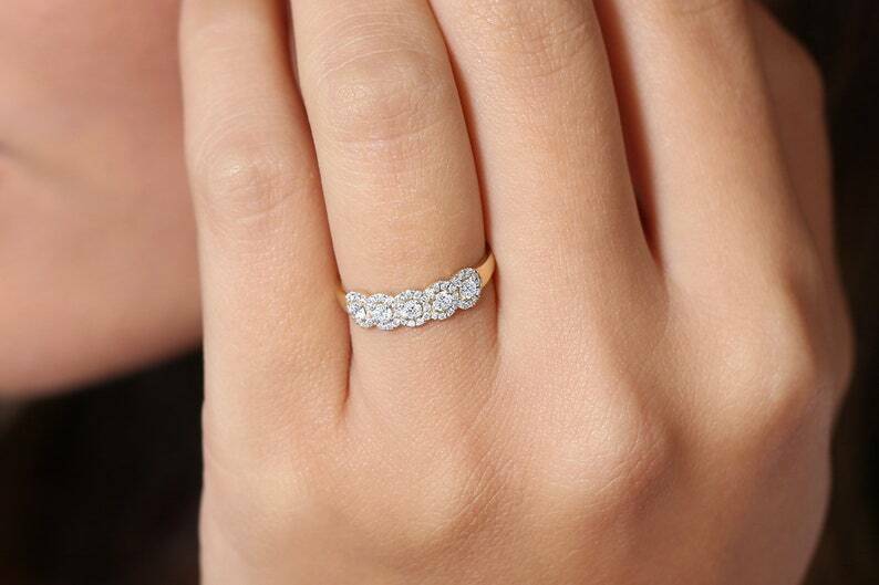 2.4ct Wedding Ring Band Round Cut Diamond Half Eternity Halo 14k YellowGold Over