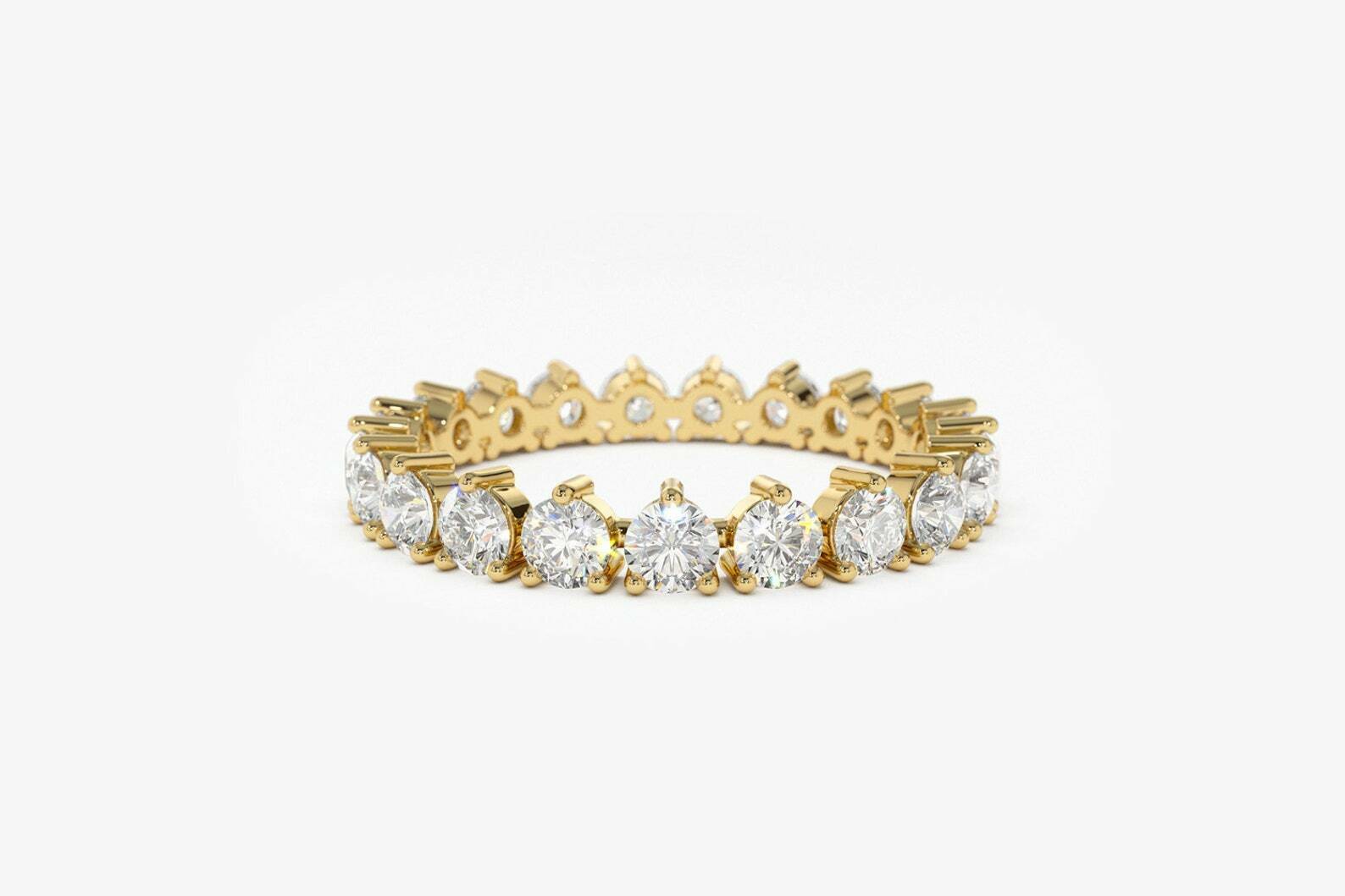 2.55ct Wedding Band Round Cut Diamond Eternity Anniversary 18k Yellow Gold Finish