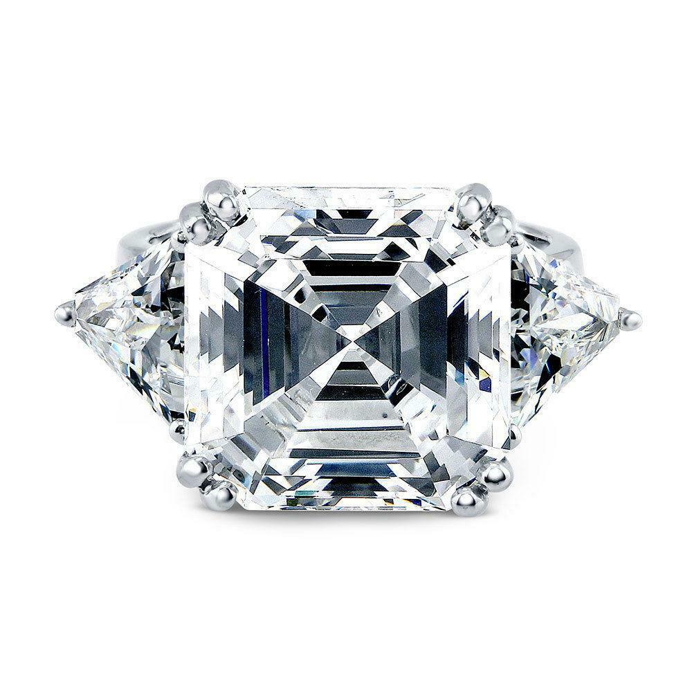 2.5Ct Asscher Cut Diamond Three Stone Ring 14K White Gold Finish Trillion Accent