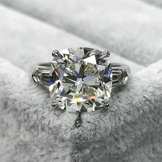 2.5Ct Cushion Cut Diamond Baguette Accents Engagement Ring 14K White Gold Finish