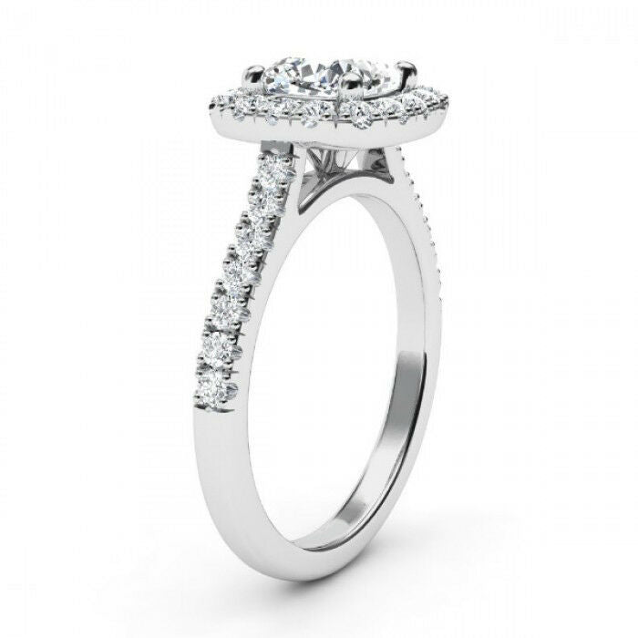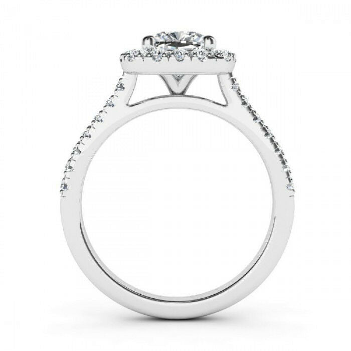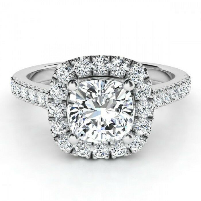 2.5ct Cushion Cut Diamond Halo Womens Engagement Ring 14k White Gold Finish