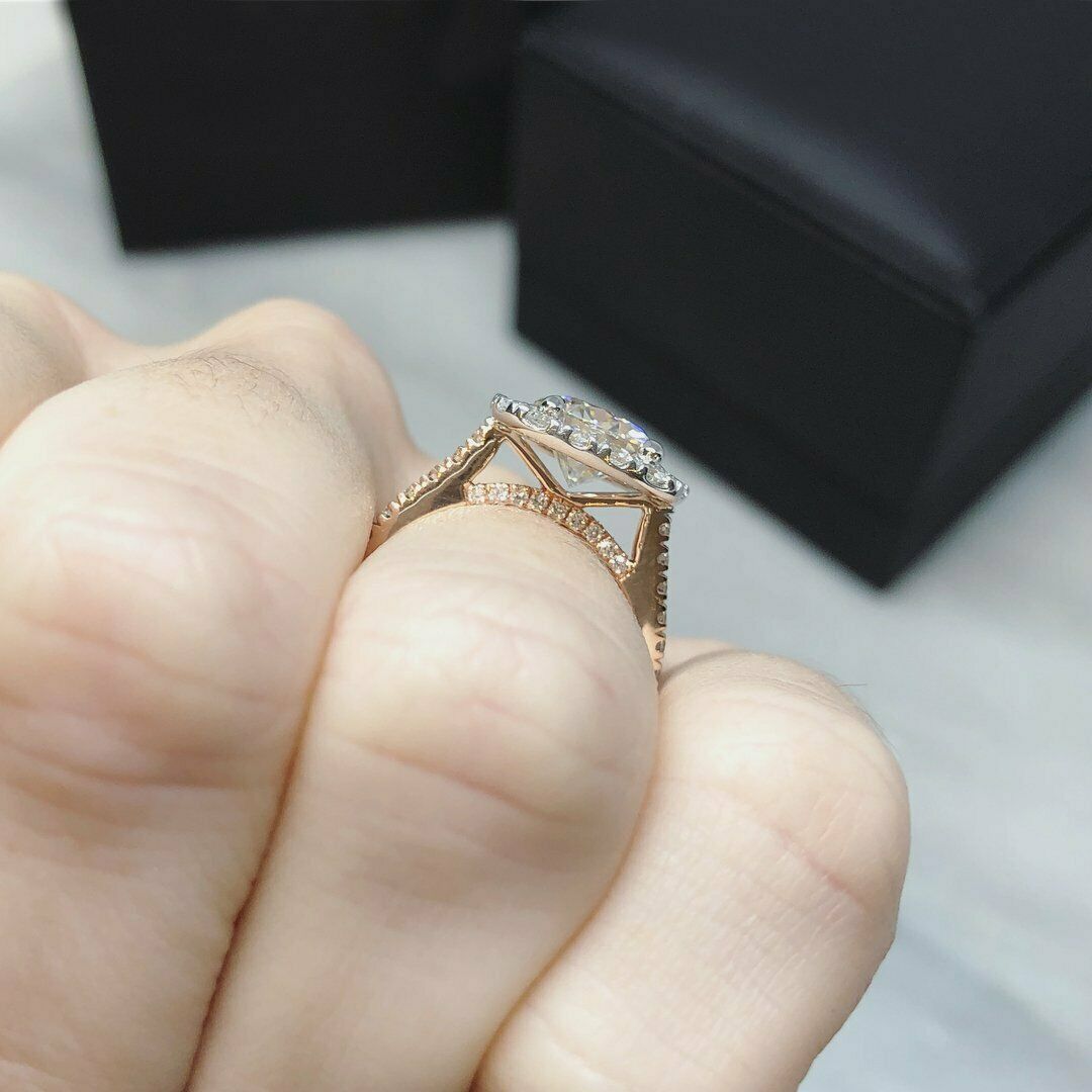2.5Ct Cushion Cut Diamond Solitaire with Accents Halo Ring 14K White Gold Finish
