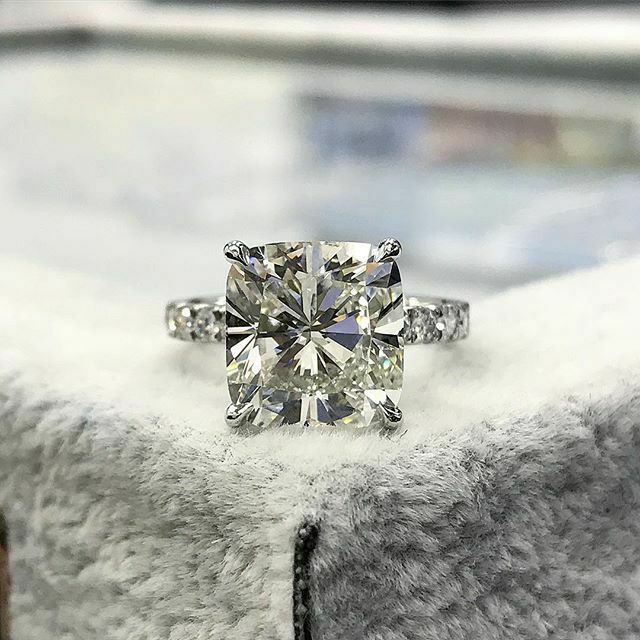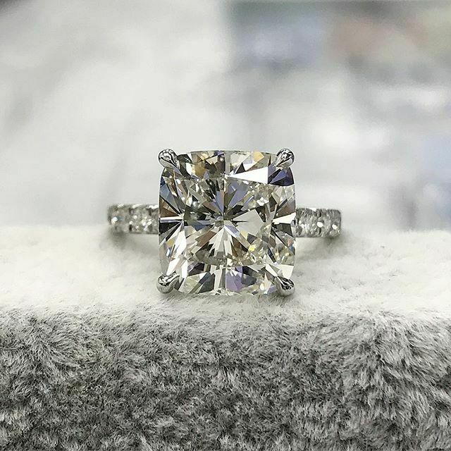 2.5Ct Cushion Cut Diamond Solitaire with Round Accent Ring 14K White Gold Finish