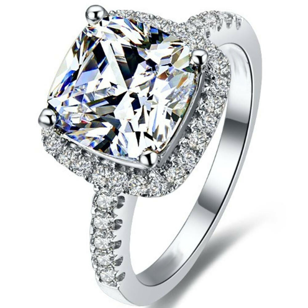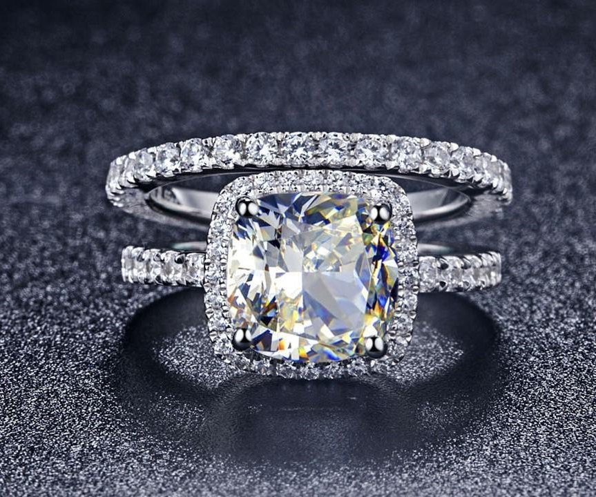 2.5Ct Cushion Cut VVS1 Diamond Bridal Set Engagement Ring 18K White Gold Finish