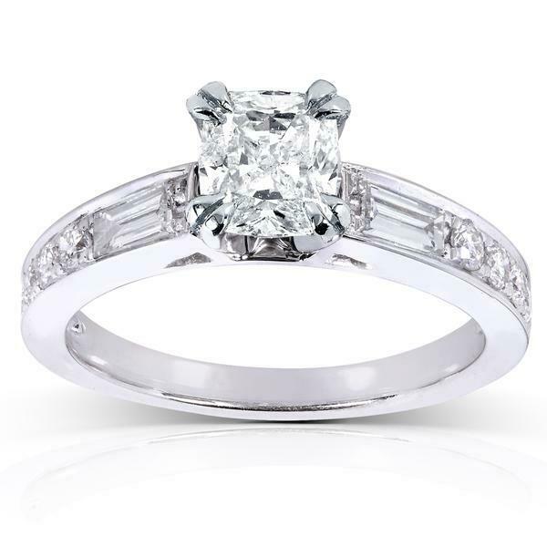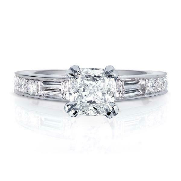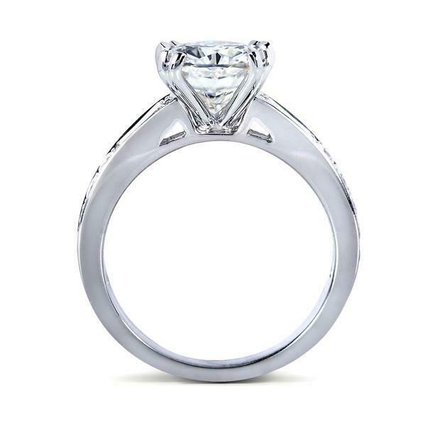 2.5Ct Cushion Cut VVS1 Diamond Solitaire with Accents Ring 14K White Gold Finish