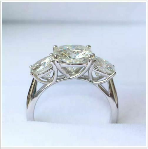 2.5Ct Cushion Cut VVS1 Diamond Three Stone Engagement Ring 14K White Gold Finish