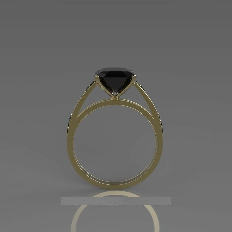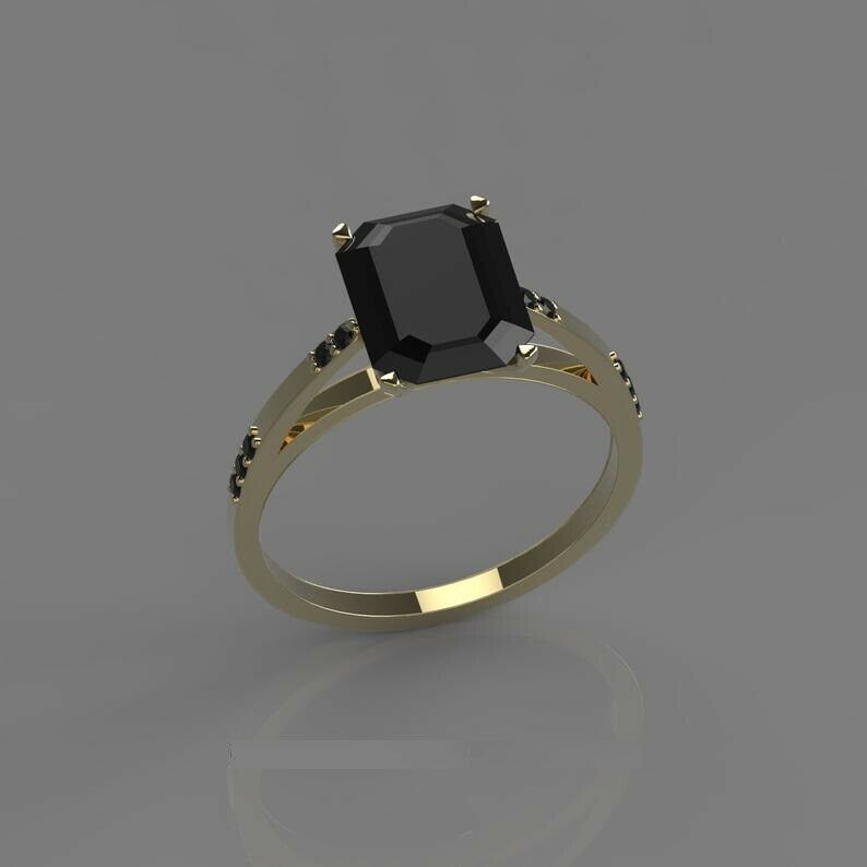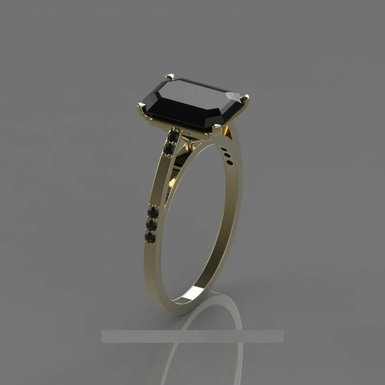 2.5ct Emerald Cut Black Diamond Engagement Ring Solitaire 14k Yellow Gold Finish
