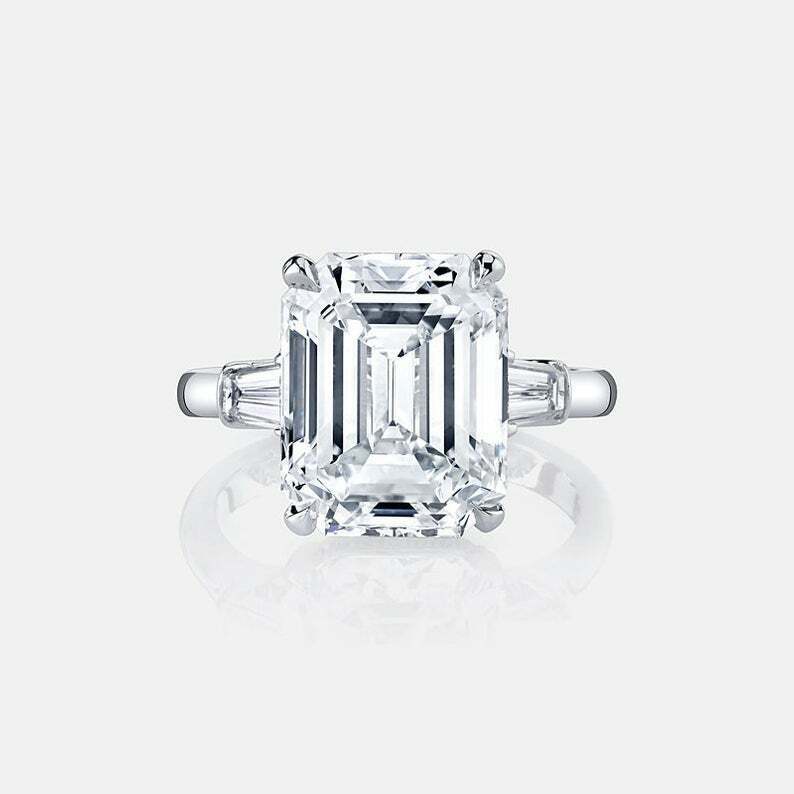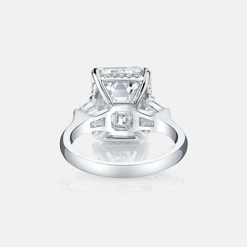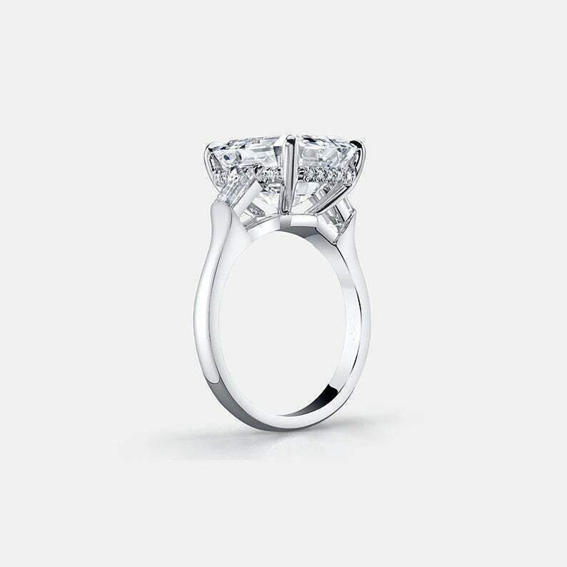 2.5ct Emerald Cut Diamond Engagement Ring Hidden Halo Trilogy 14k White Gold Over