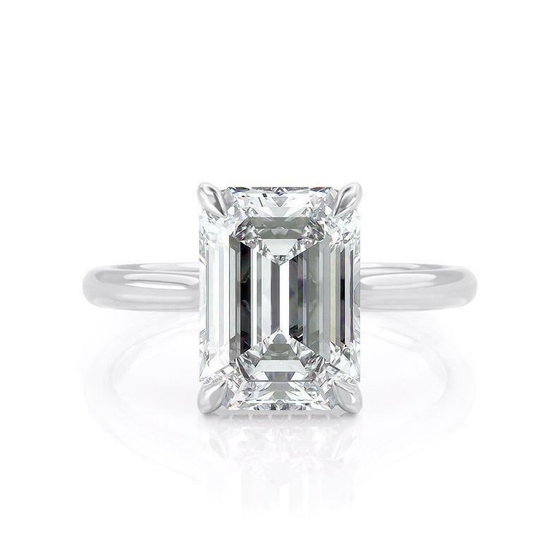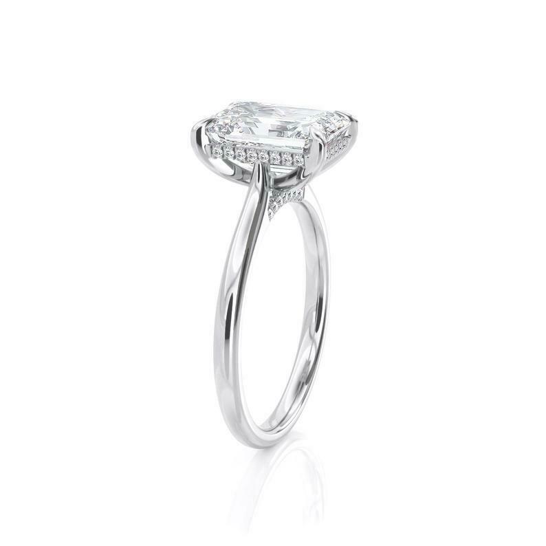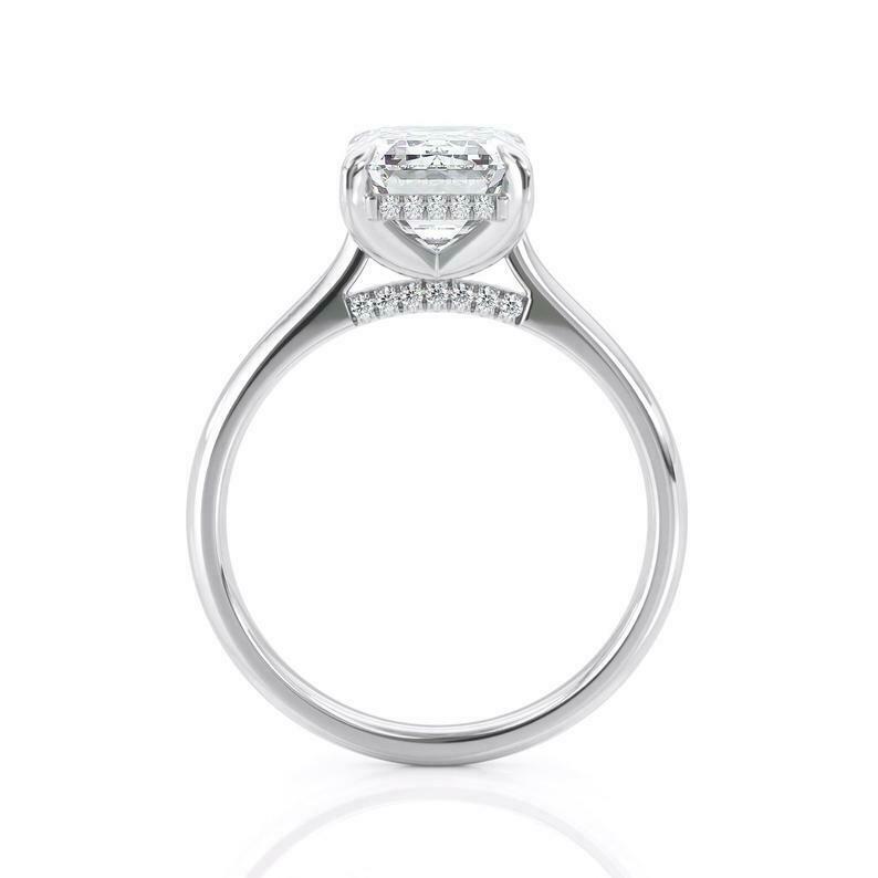 2.5ct Emerald Diamond Engagement Ring Hidden Halo Solitaire 14k White Gold Over