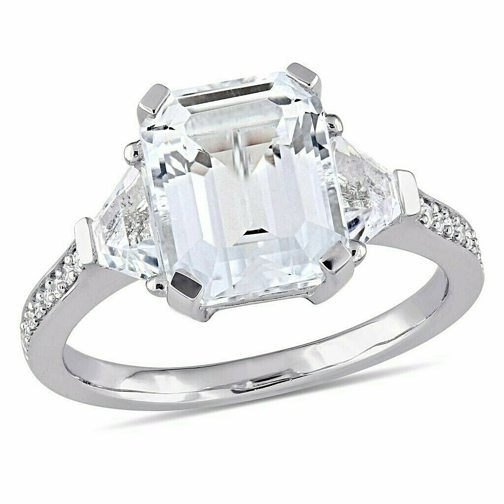 2.5Ct Emerald Diamond Solitaire Ring 14K White Gold Over Trapezoid Round Accents