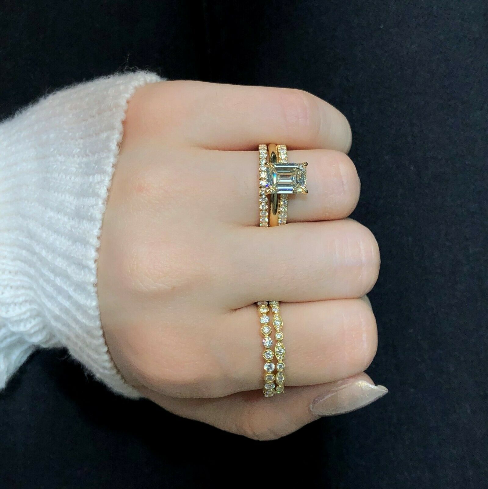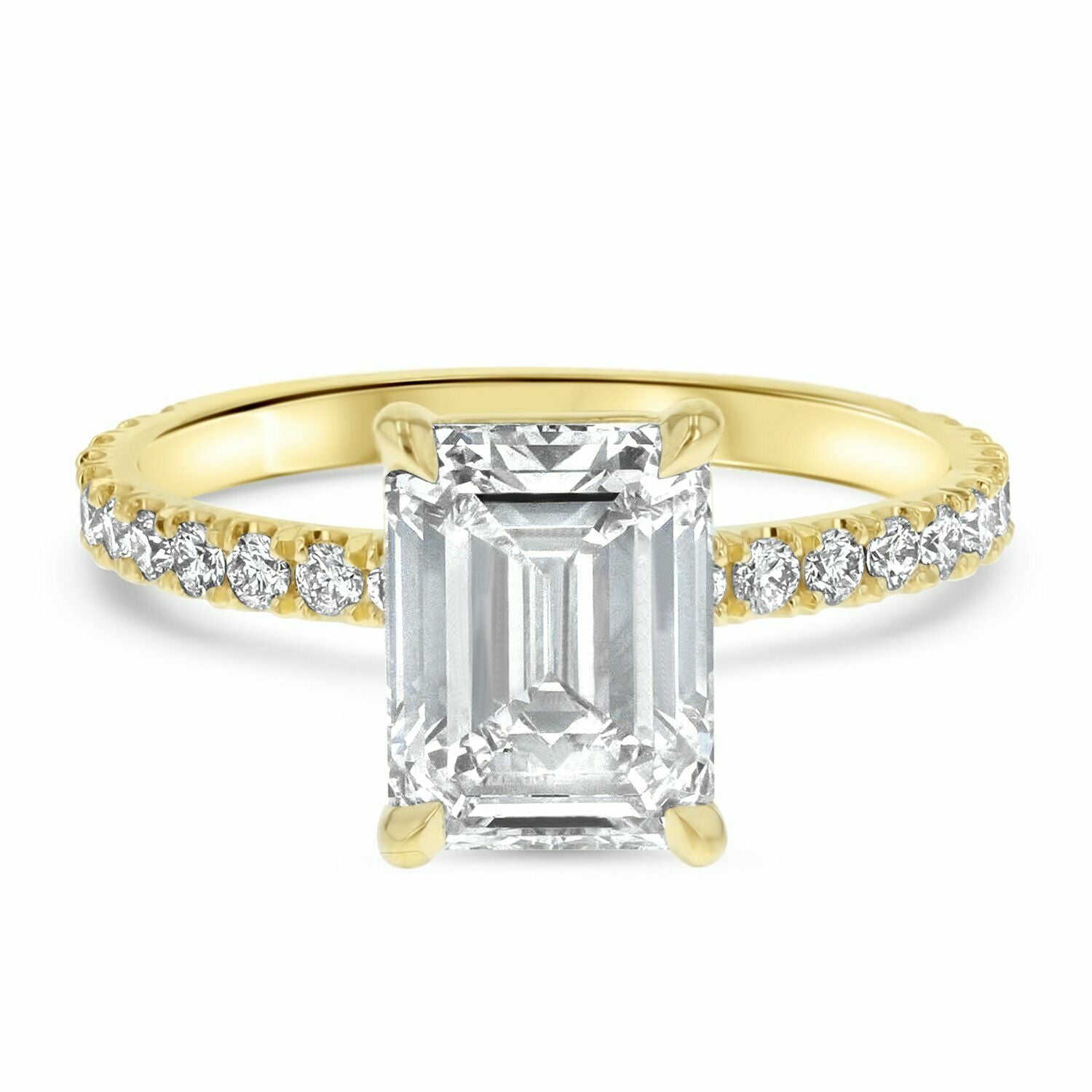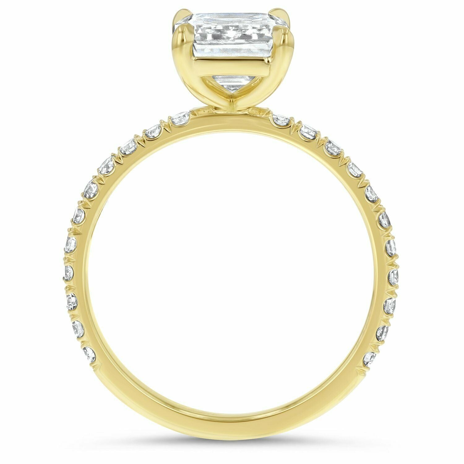 2.5ct Engagement Ring Emerald Cut Diamond Solitaire with Accent 14k Yellow Gold Over