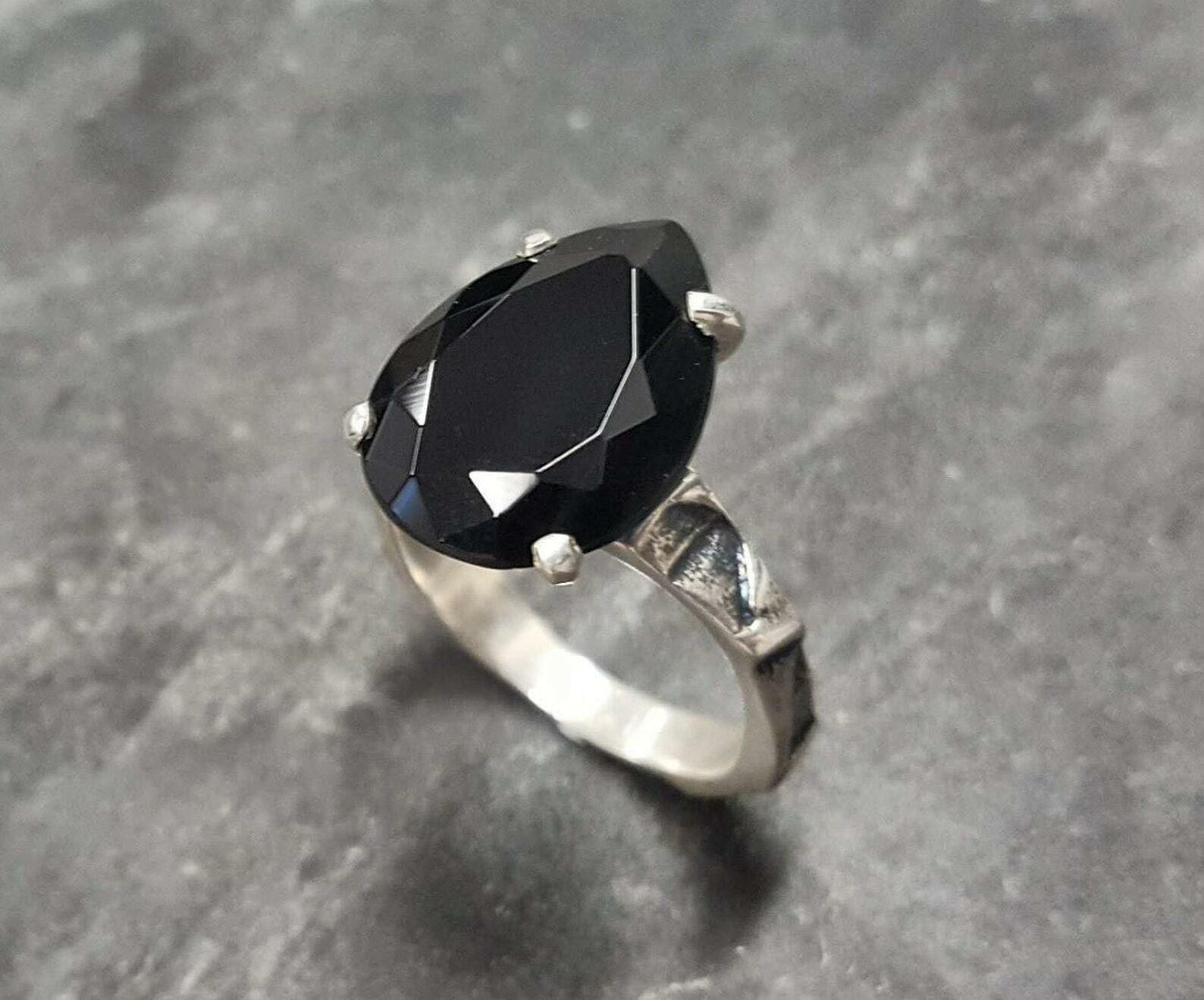 2.5ct Engagement Ring Pear Cut Black Diamond Solitaire 14k White Gold Finish