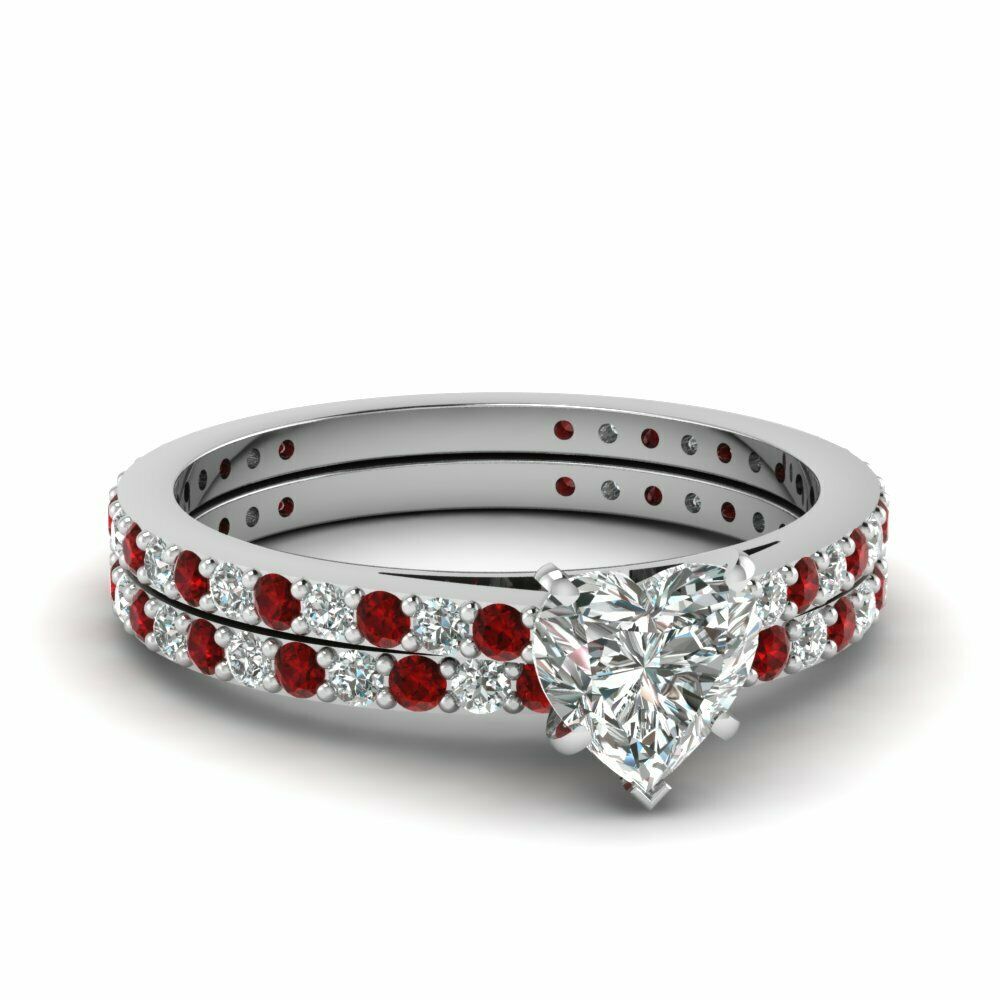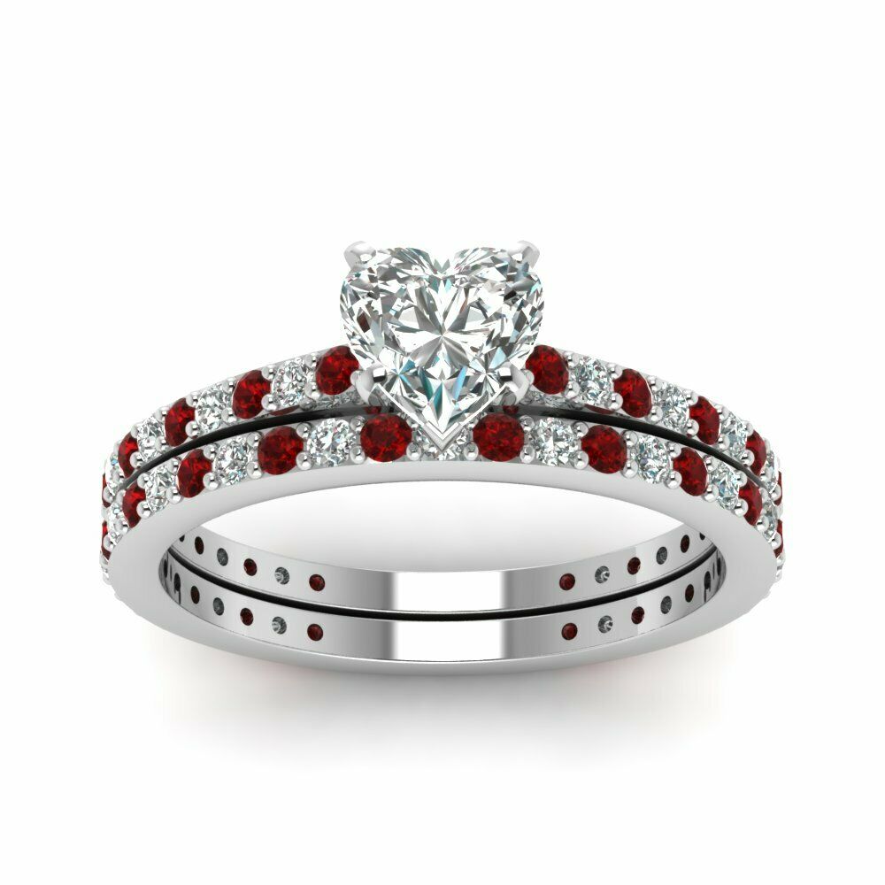 2.5ct Heart Cut Diamond Garnet Bridal Set Engagement Ring 14k White Gold Finish