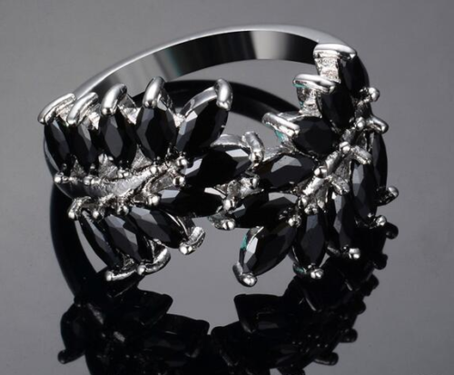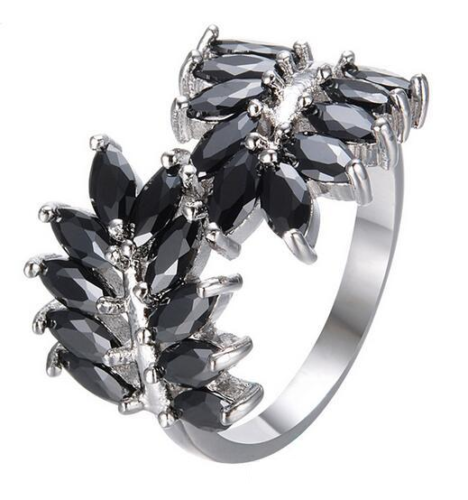 2.5ct Marquise Cut Black Diamond ByPass Leaf Engagement Ring 14K White Gold Over