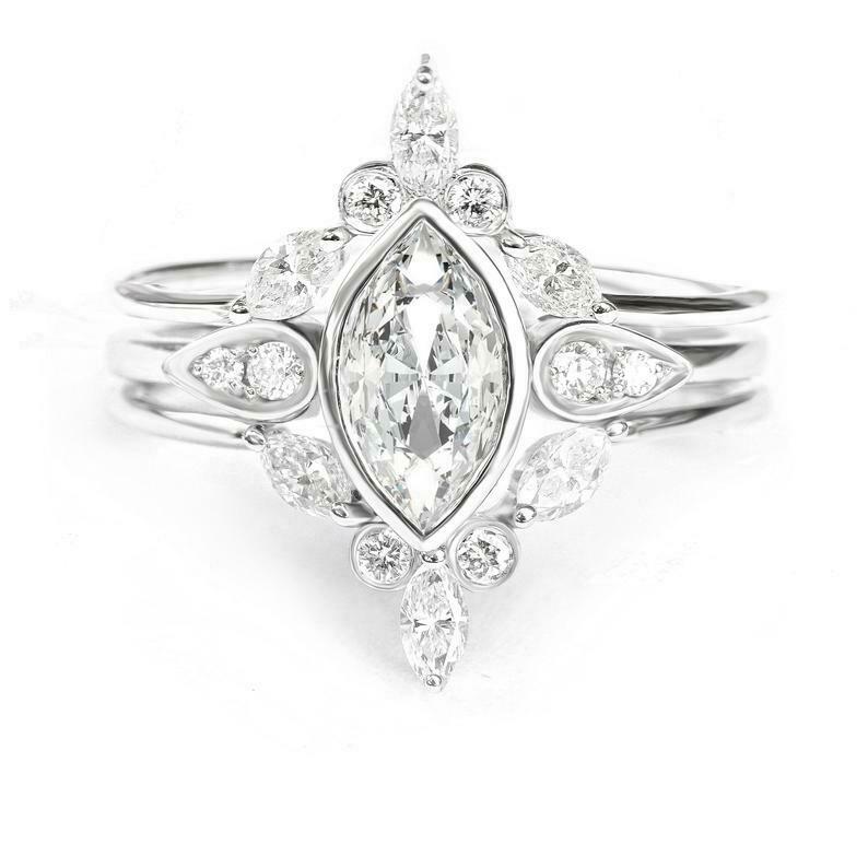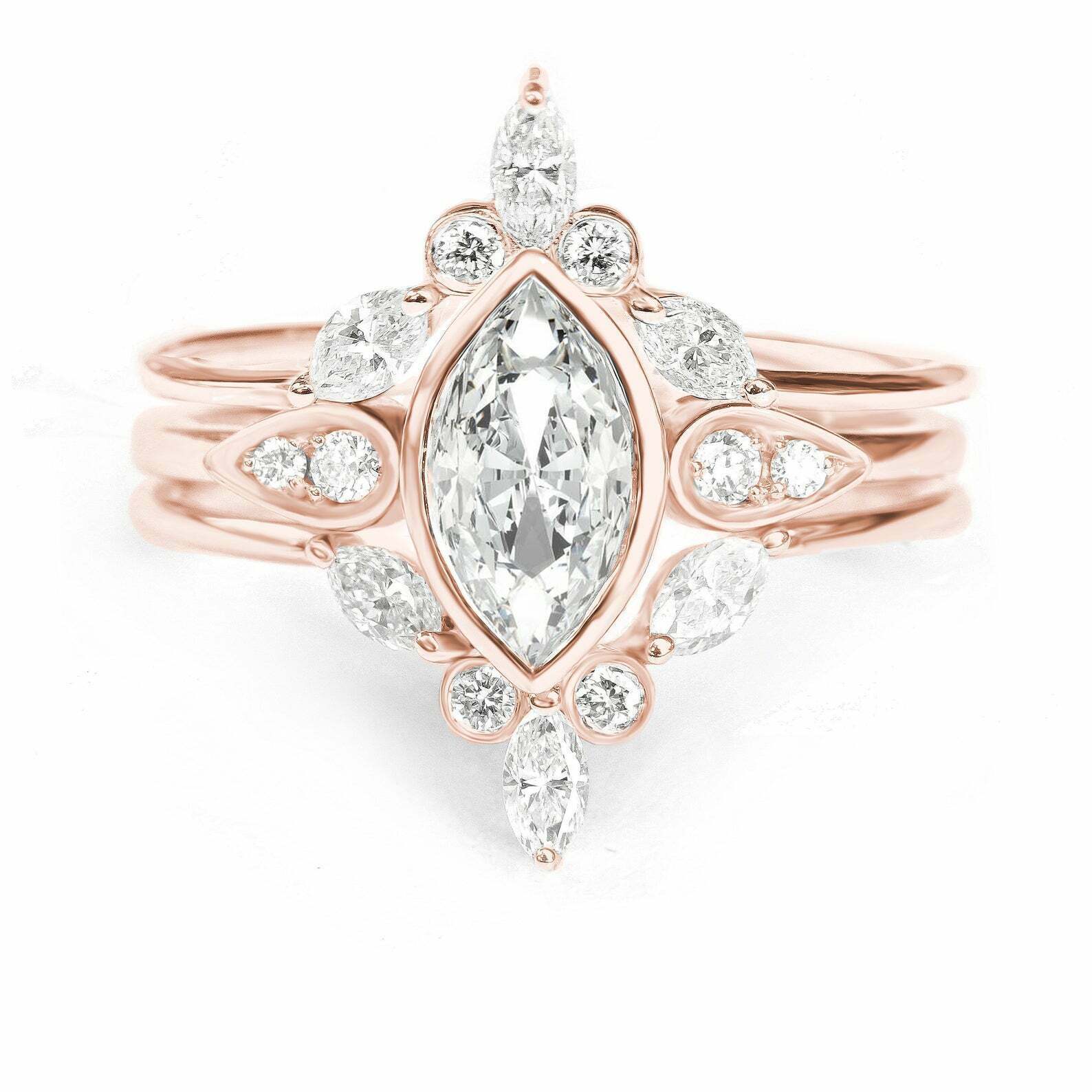 2.5ct Marquise Cut Diamond Engagement Ring Art Deco Trio Set 14k RoseGold Finish