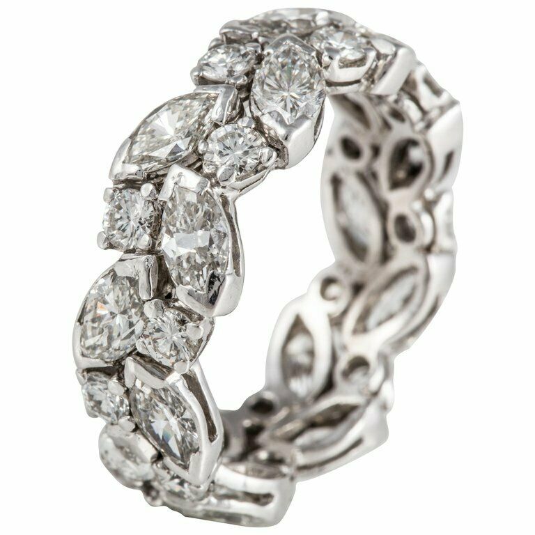 2.5ct Marquise & Round Cut Diamond Wedding Ring Band Eternity 14k WhiteGold Over
