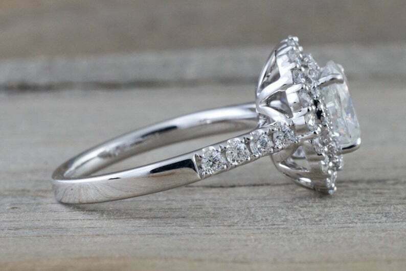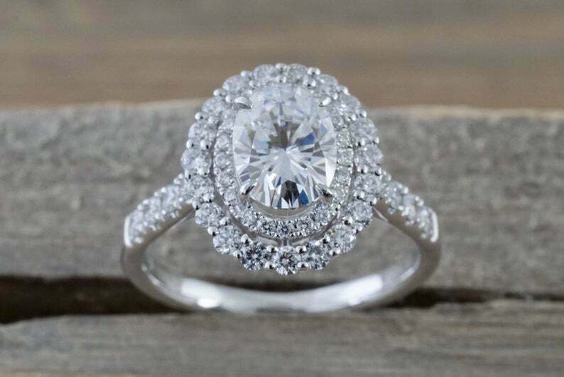 2.5ct Oval Cut Diamond Engagement Ring 14k White Gold Finish Dual Halo Solitaire