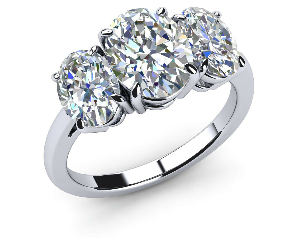 2.5ct Oval Cut Diamond Engagement Ring 14k White Gold Finish Trilogy Solitaire