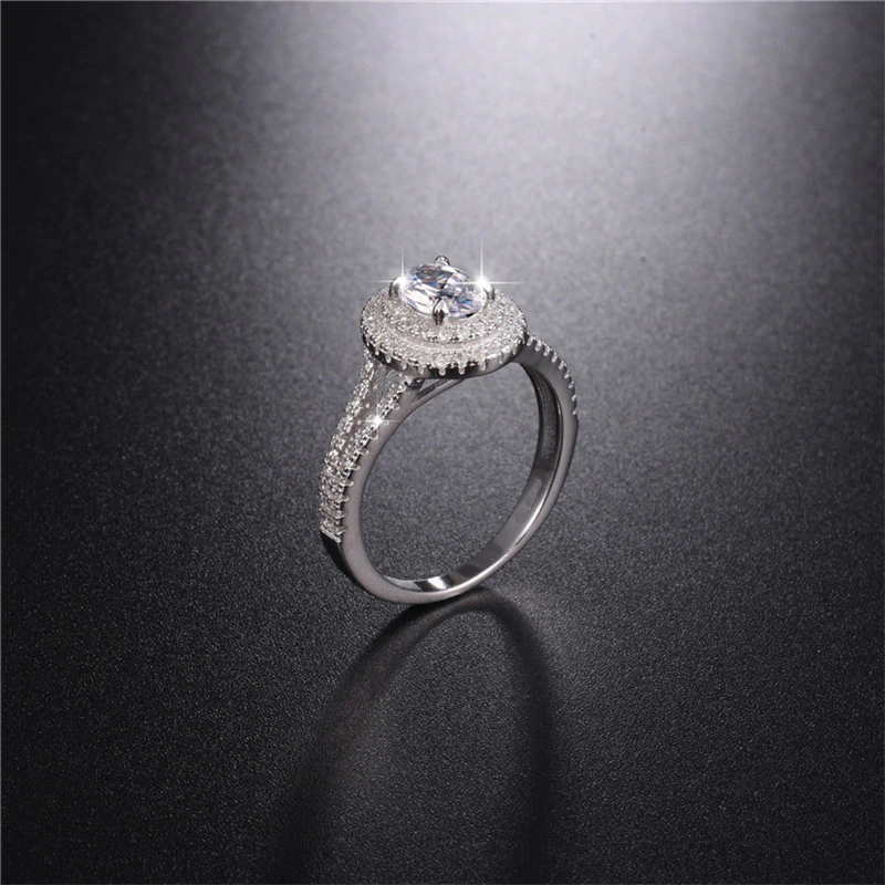 2.5ct Oval Cut Diamond Engagement Ring 14k WhiteGold Over Double Halo Split Band