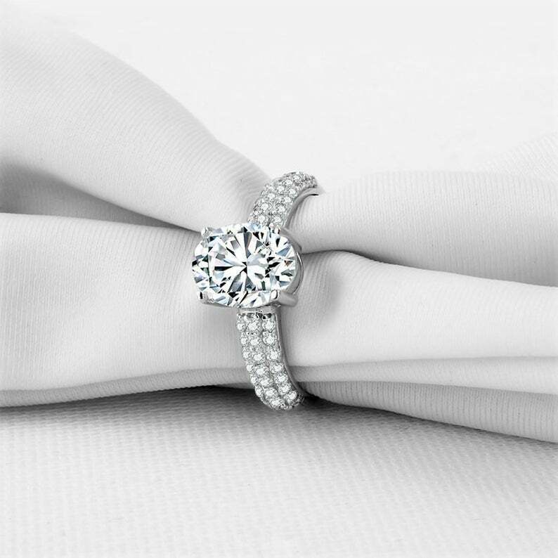 2.5ct Oval Cut Diamond Engagement Ring 3 Row Shank Solitaire 14k White Gold Over