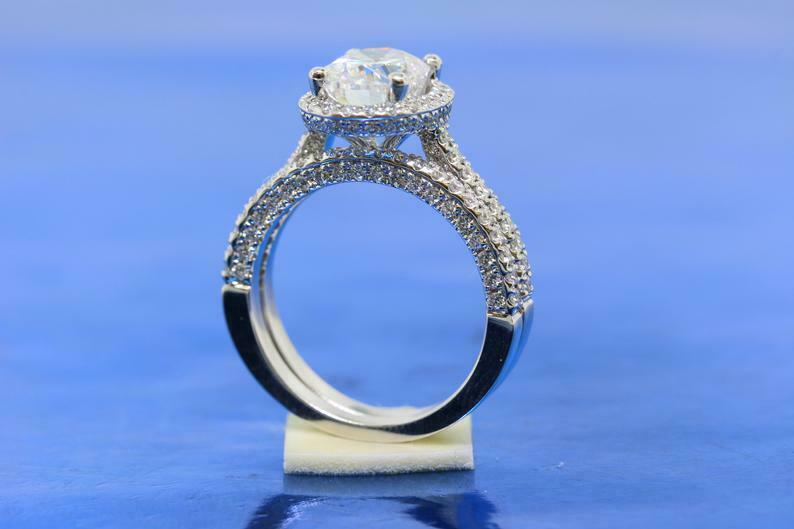 2.5ct Oval Cut Diamond Halo Bridal Set Band Engagement Ring 14k WhiteGold Finish