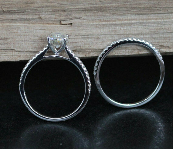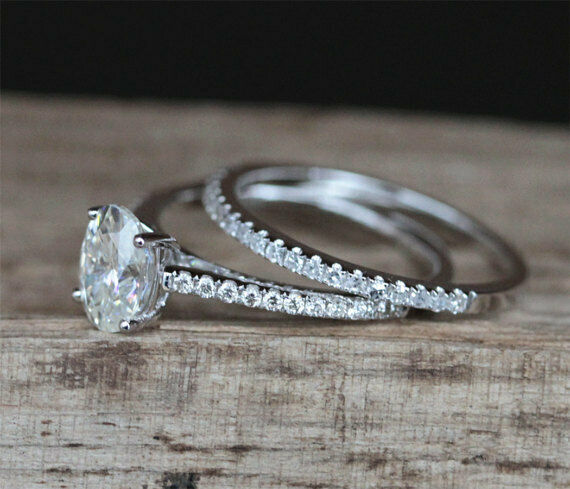2.5Ct Oval Cut VVS1 Diamond Bridal Set Solitaire Ring Band 14K White Gold Finish