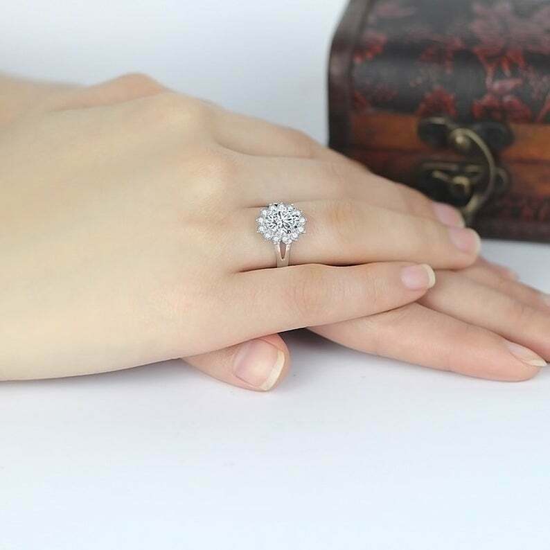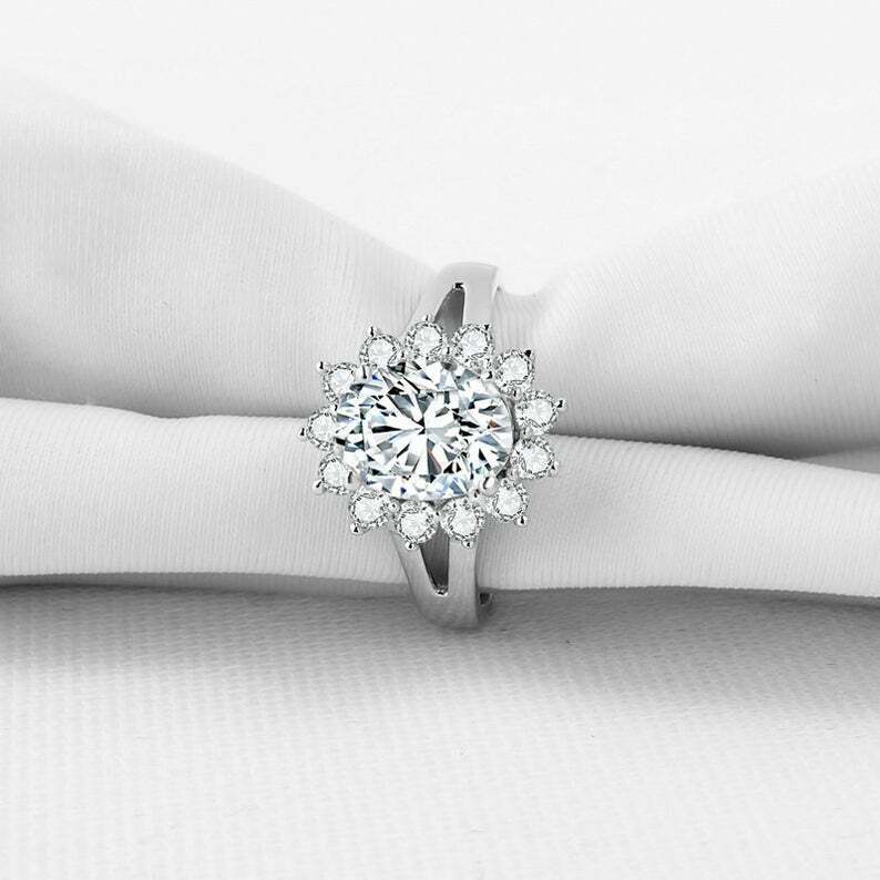 2.5ct Oval Diamond Engagement Ring Floral Cluster Split Band 14k White Gold Over