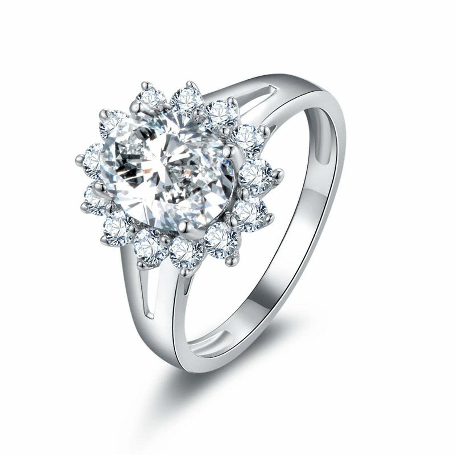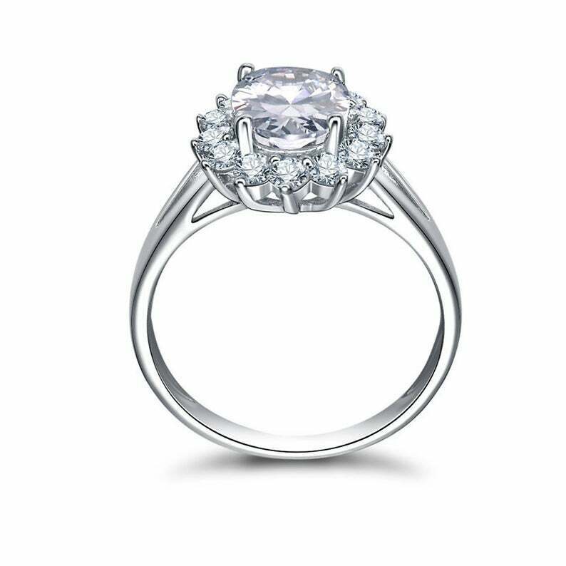 2.5ct Oval Cut Diamond Engagement Ring Floral Cluster Split Band 14k White Gold Over