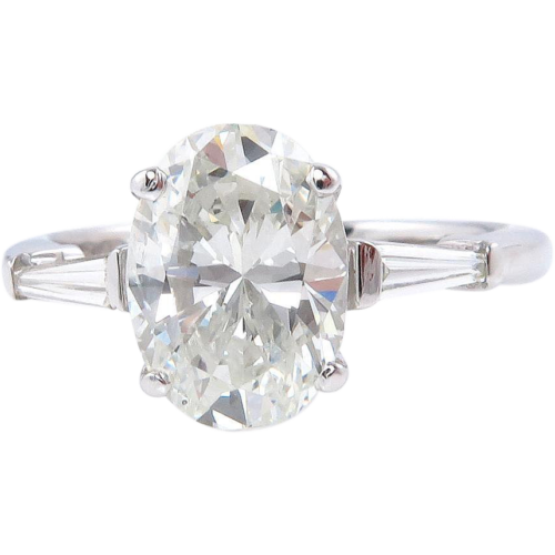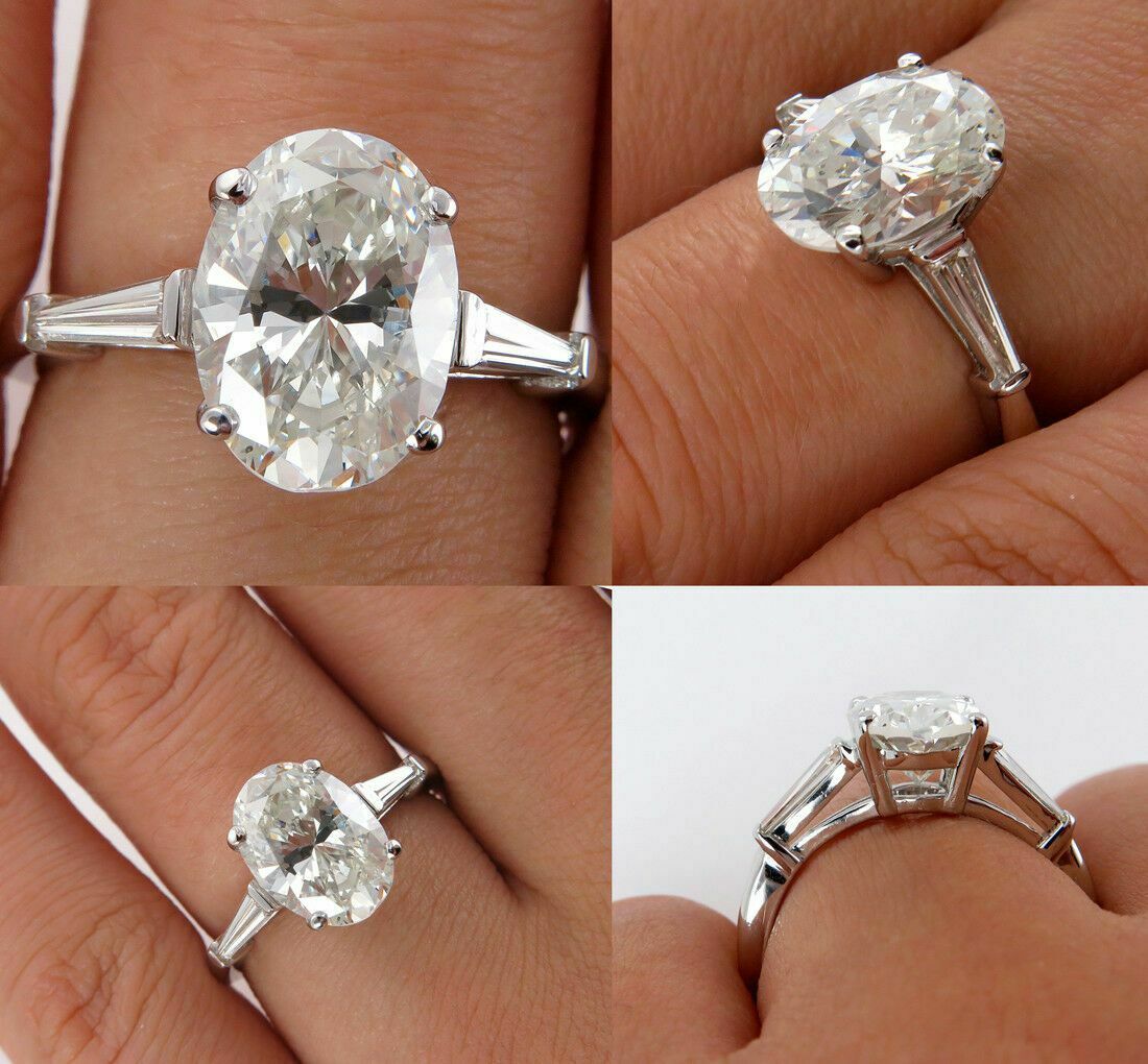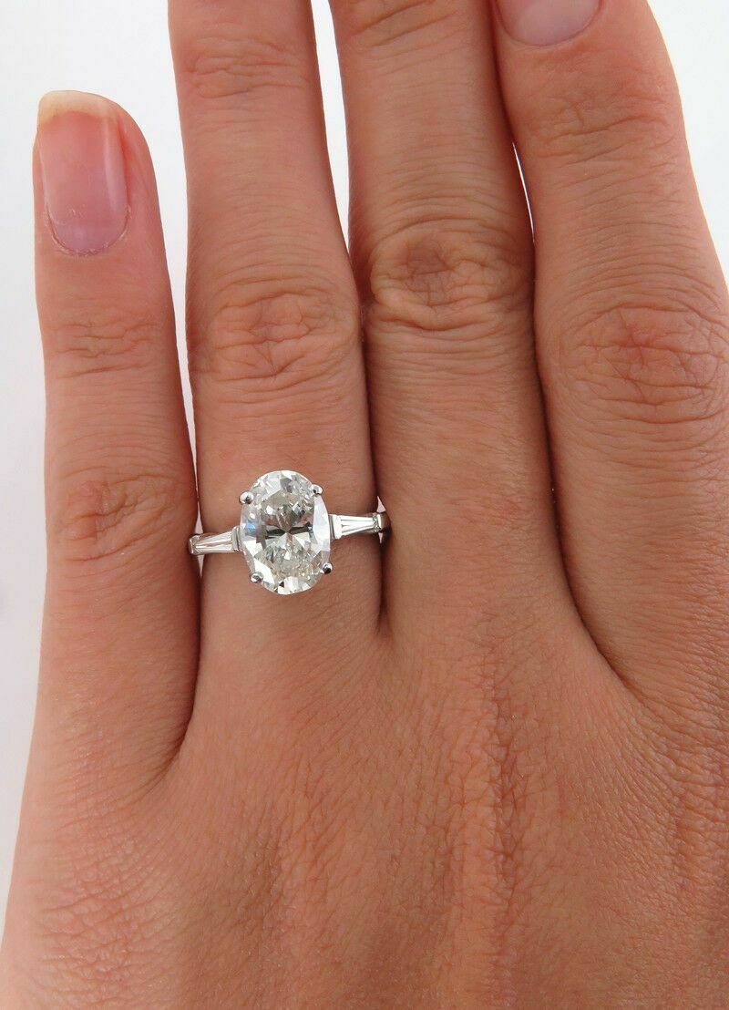 2.5ct Oval Diamond Trilogy Engagement Ring 14K White Gold Over Baguette Accent