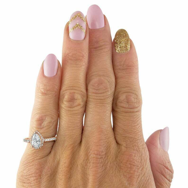 2.5ct Pear Cut Diamond Accents Halo Solitaire Engagement Ring 14k Rose Gold Over