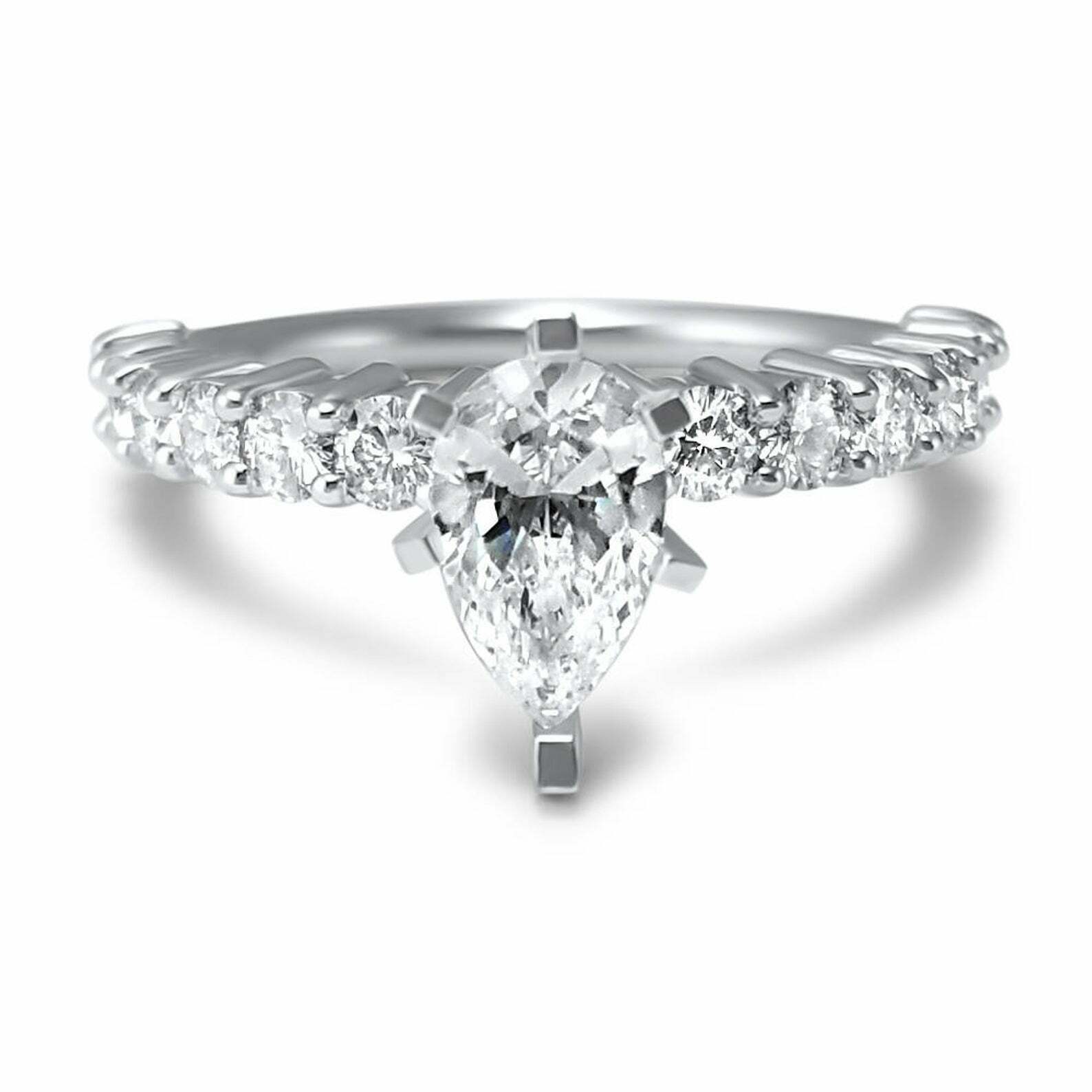 2.5ct Pear Cut Diamond Bridal Set Solitaire Engagement Ring 14k White Gold Over