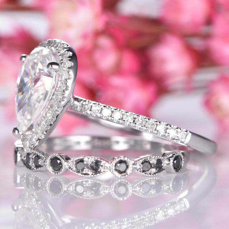 2.5ct Pear Cut Diamond Engagement Ring Halo Bridal Set 14k White Gold Finish