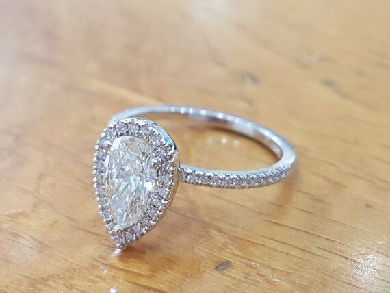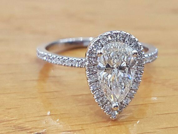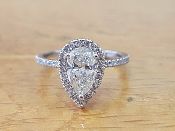 2.5ct Pear Cut Diamond Halo Accent Solitaire Engagement Ring 14k White Gold Over