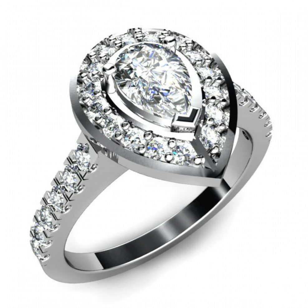 2.5ct Pear Cut VVS1 Diamond Tear Drop Cool Engagement Ring 14k White Gold Finish