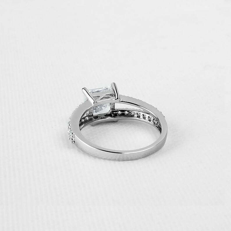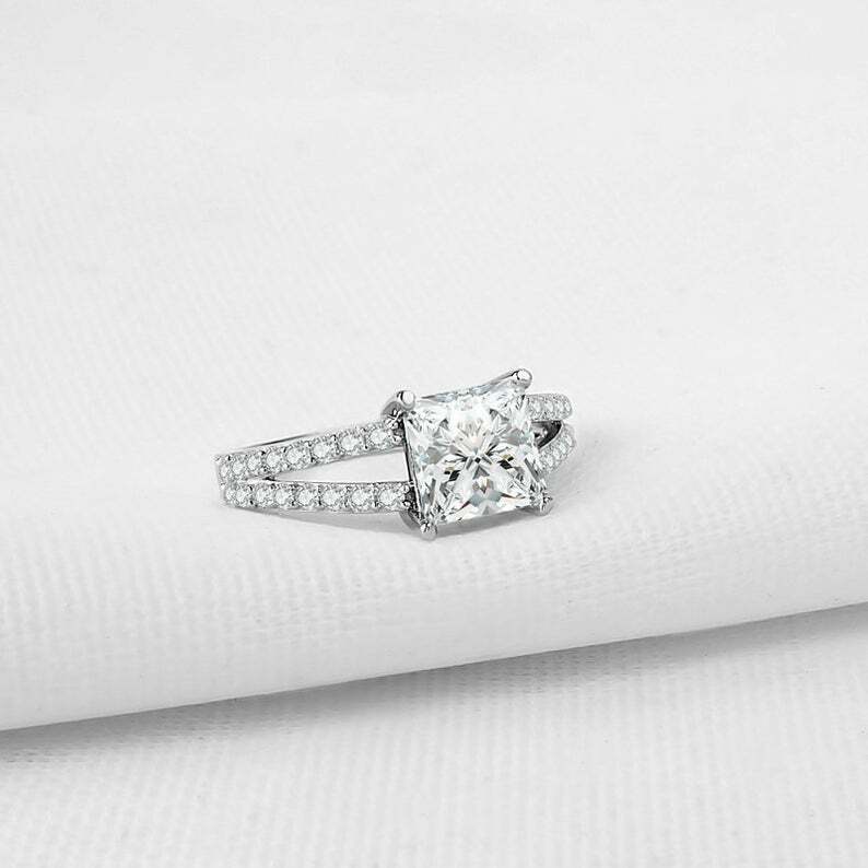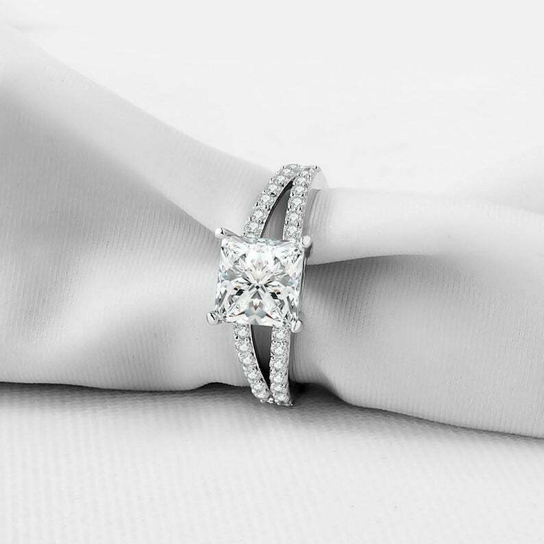 2.5ct Princess Cut Diamond Engagement Ring Halo Split Shank 14k White Gold Finish