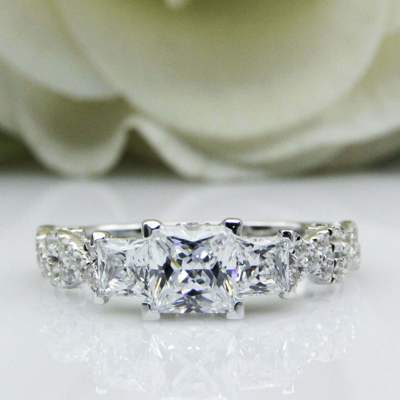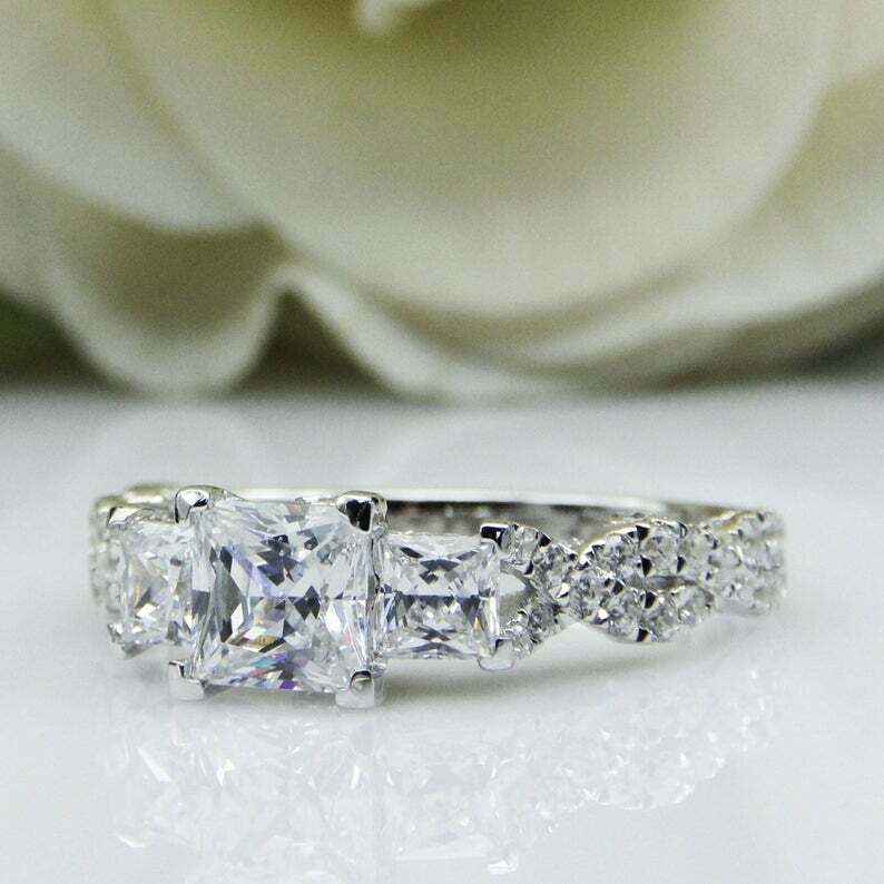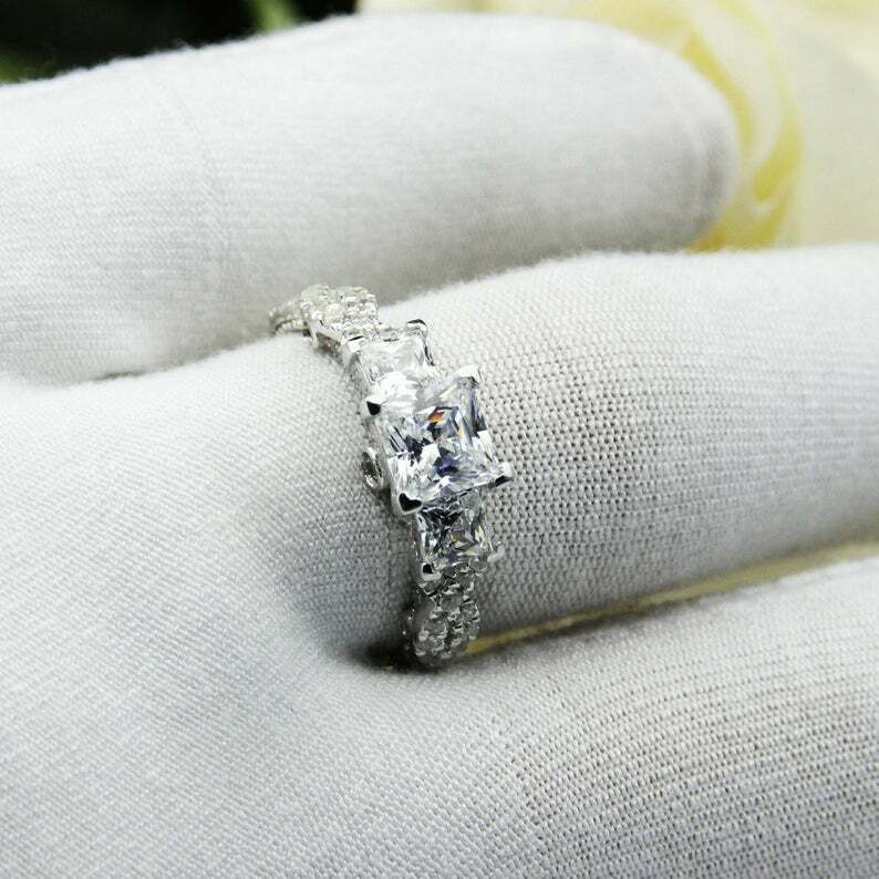 2.5ct Princess Cut Diamond Trilogy Infinity Shank Ring 14k White Gold Finish