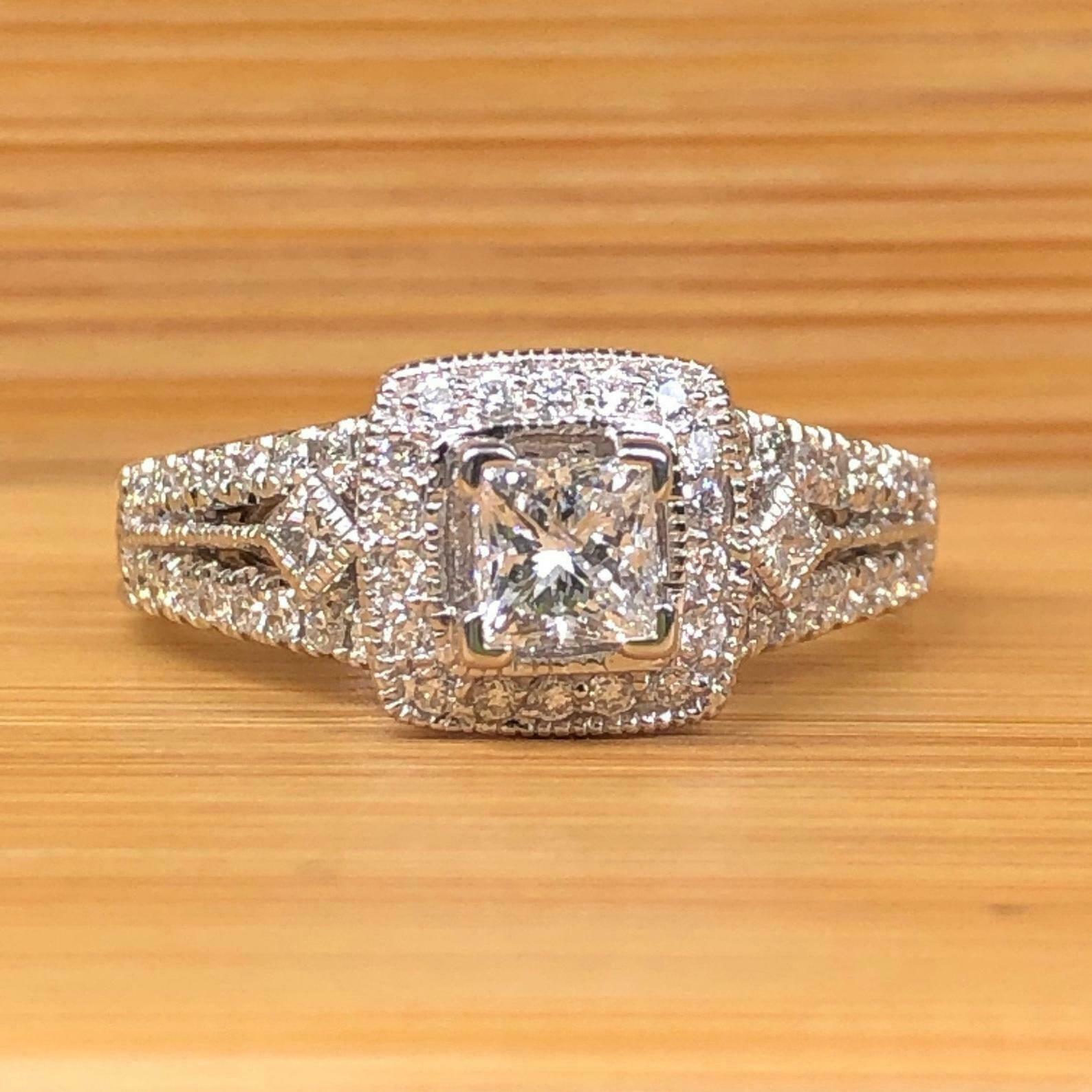 2.5ct Princess Diamond Engagement Ring Milgrain Halo Vintage 14k White Gold Over