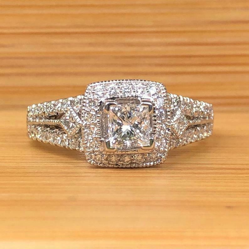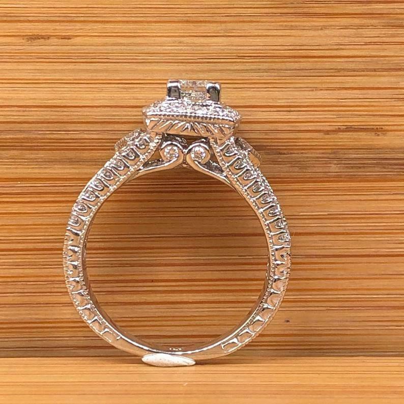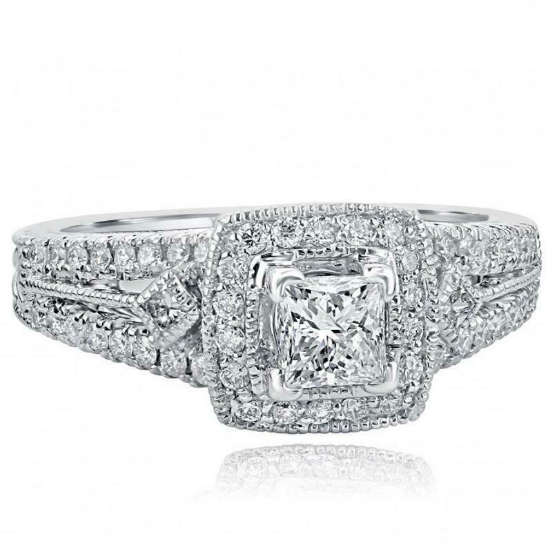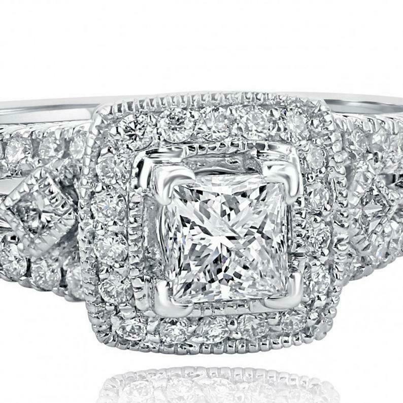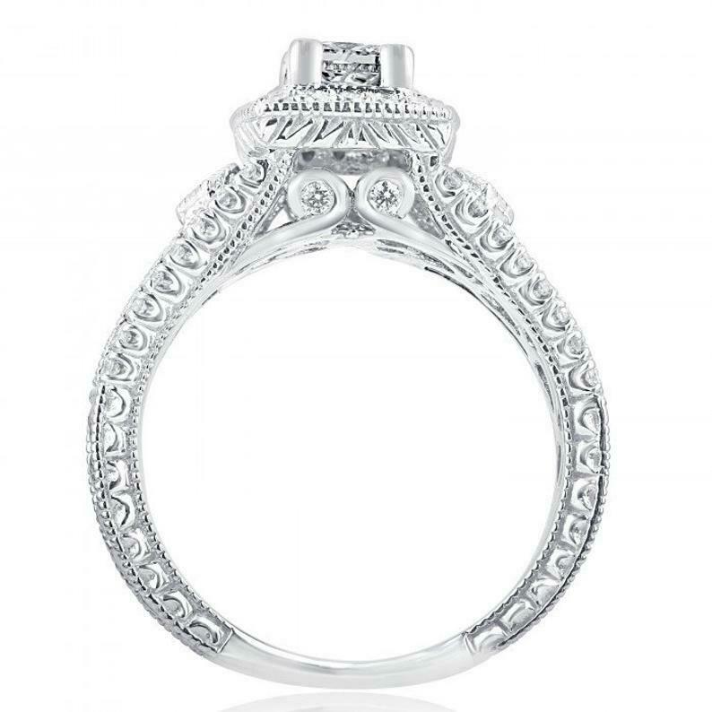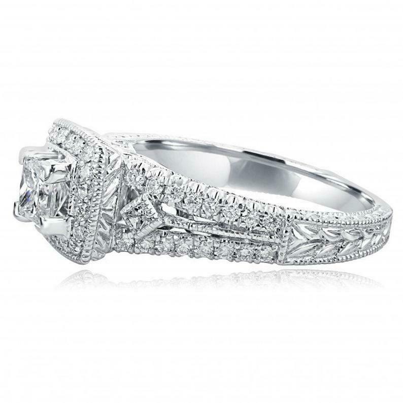 2.5ct Princess Cut Diamond Engagement Ring Milgrain Halo Vintage 14k White Gold Over