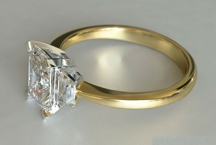 2.5ct Radiant Cut Diamond Trilogy Ring 14k Yellow Gold Finish Trapezoid Accents