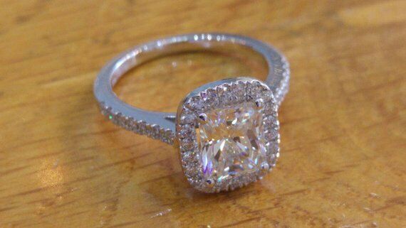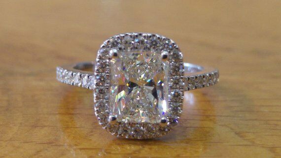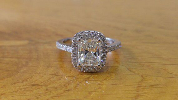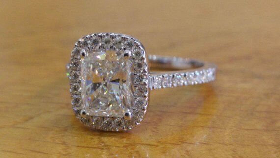 2.5ct Radiant Cut VVS1 Diamond Halo Promise Engagement Ring 14k WhiteGold Finish