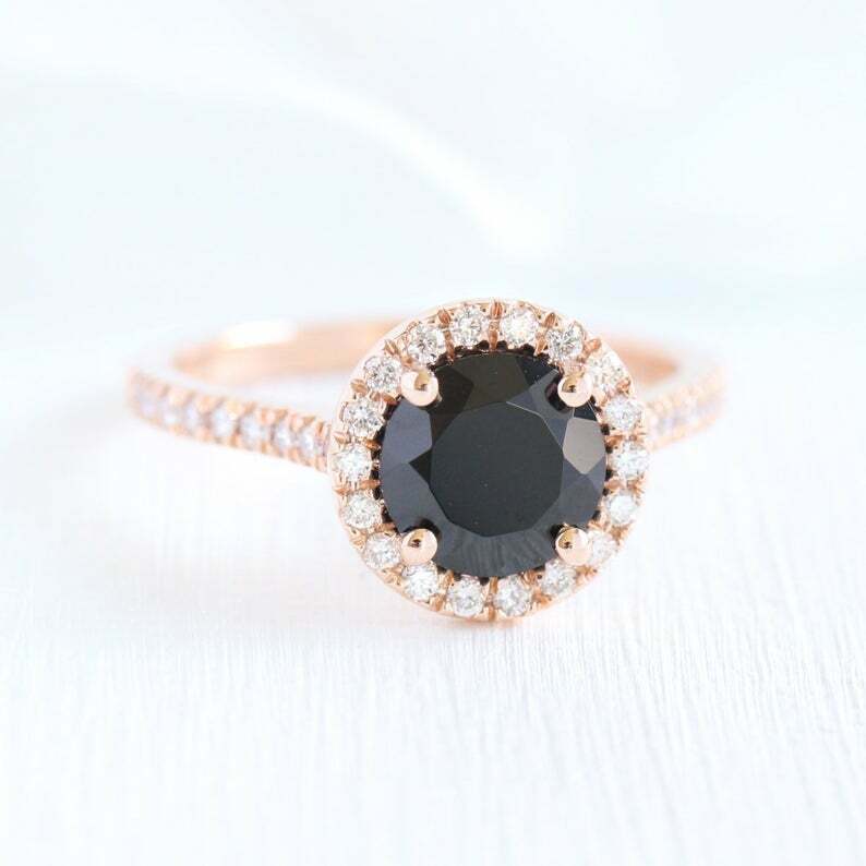 2.5ct Round Cut Black Diamond Engagement Ring Halo Bridal Set 14k Rose Gold Over