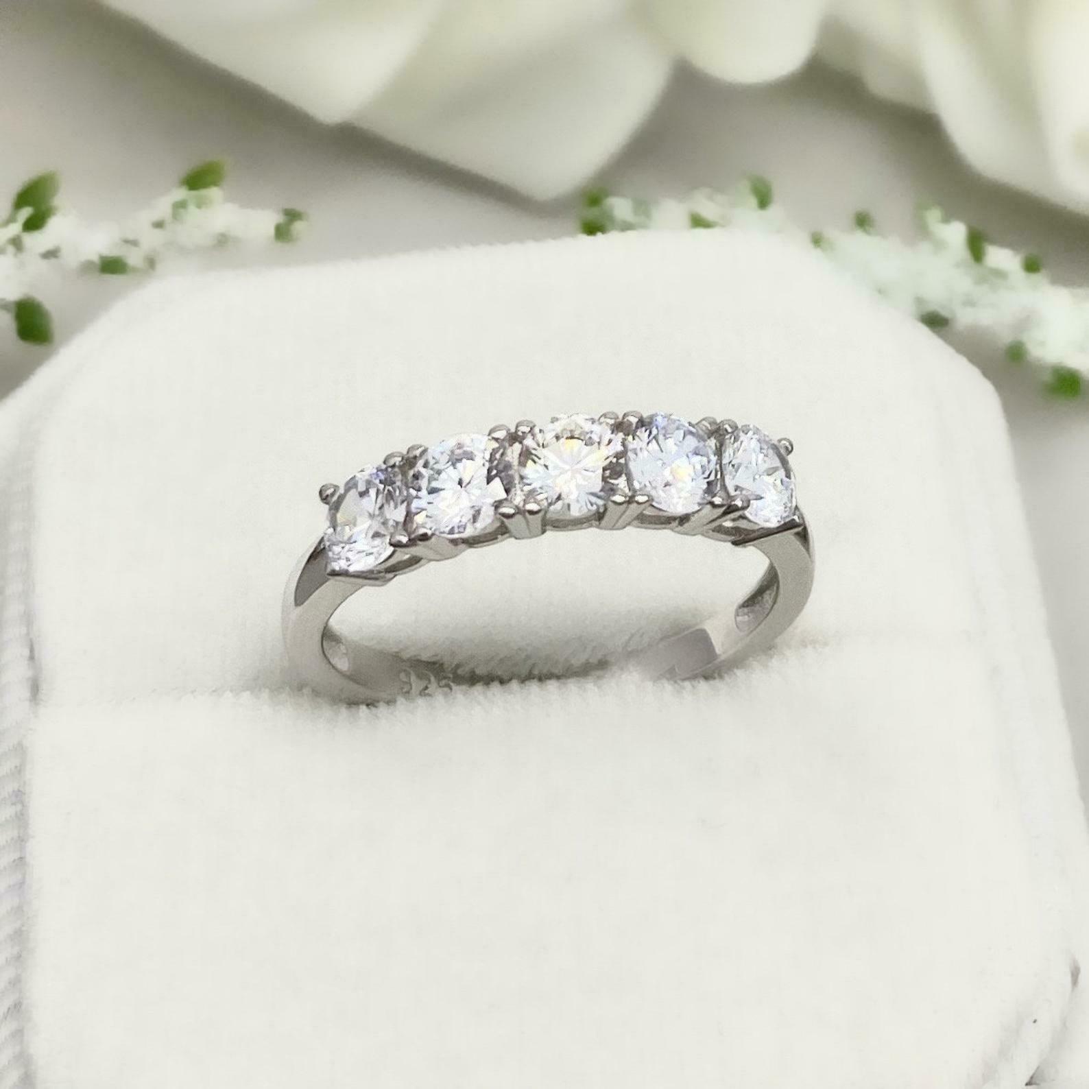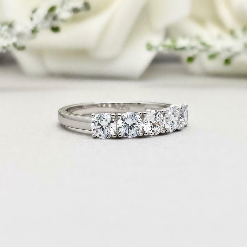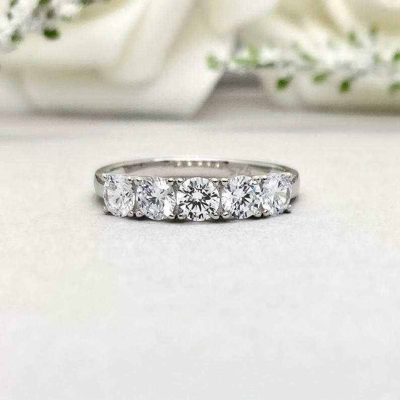 2.5ct Round Cut Diamond 5 Stone Wedding Anniversary Band 14k White Gold Finish