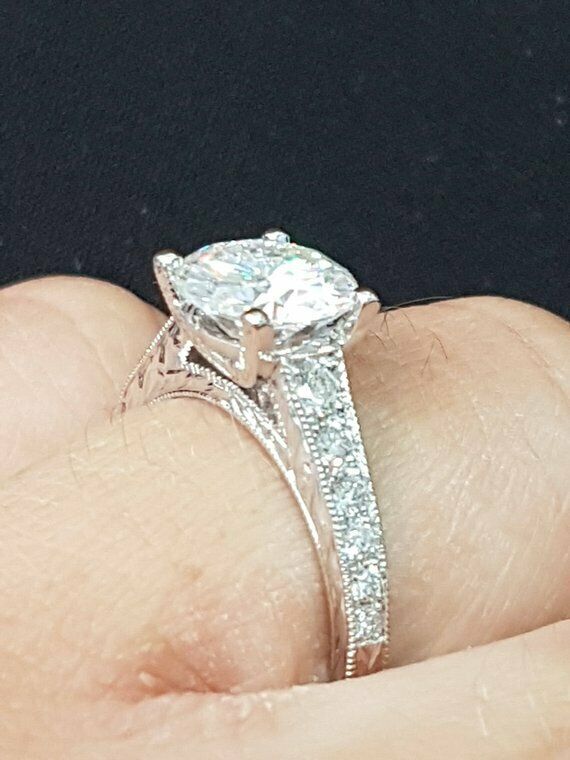 2.5ct Round Cut Diamond Antique Vintage Engagement Ring 14k White Gold Finish