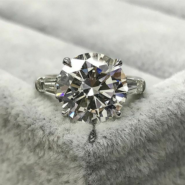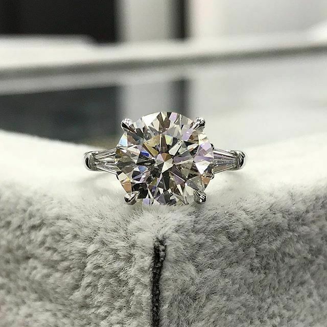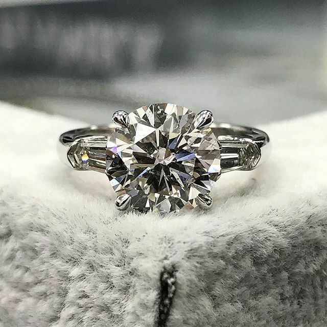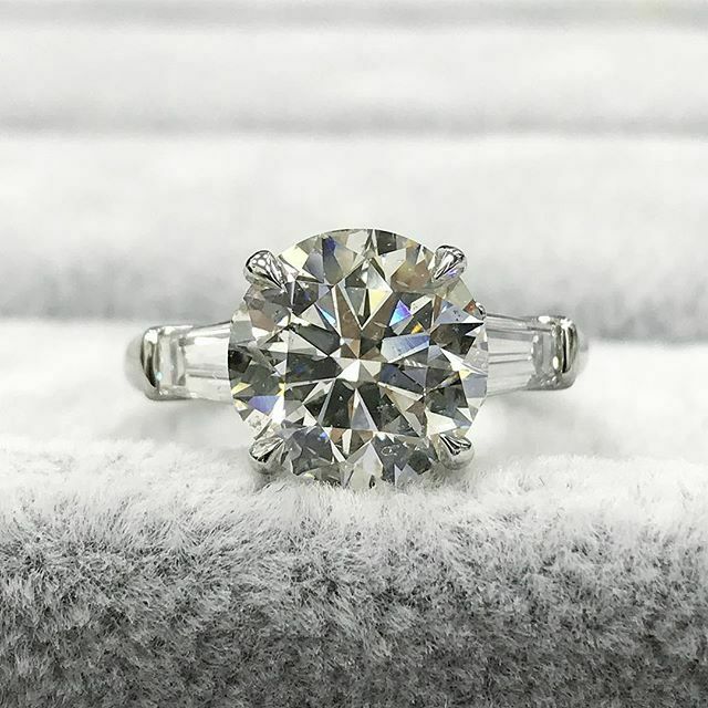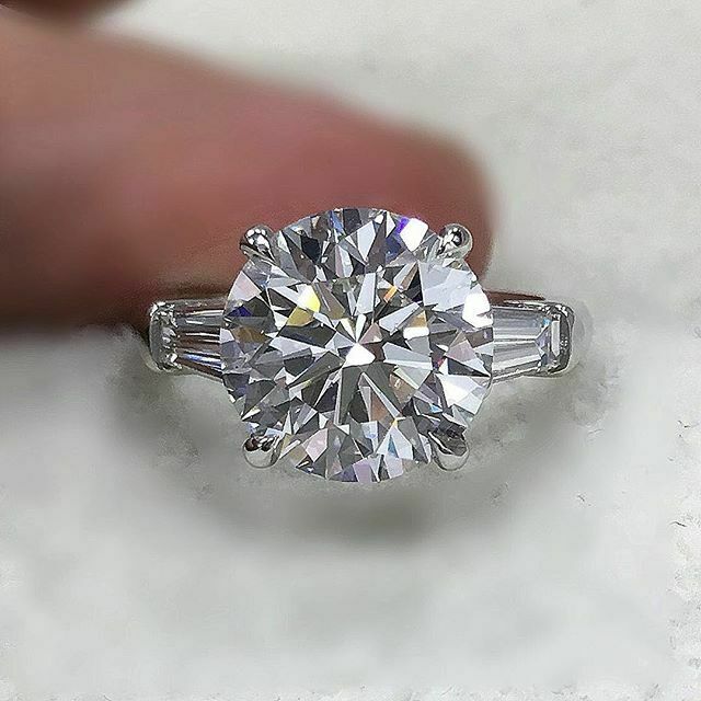 2.5Ct Round Cut Diamond Baguette Accents Engagement Ring 14K White Gold Finish