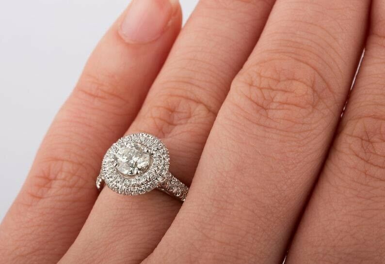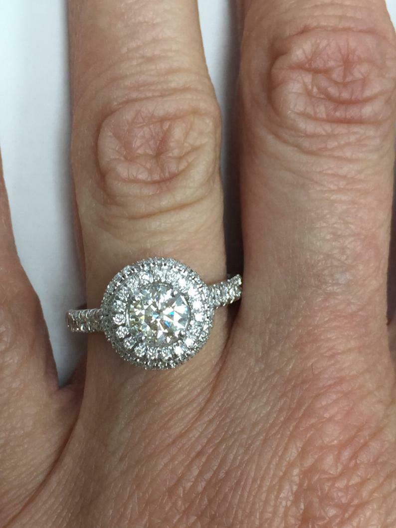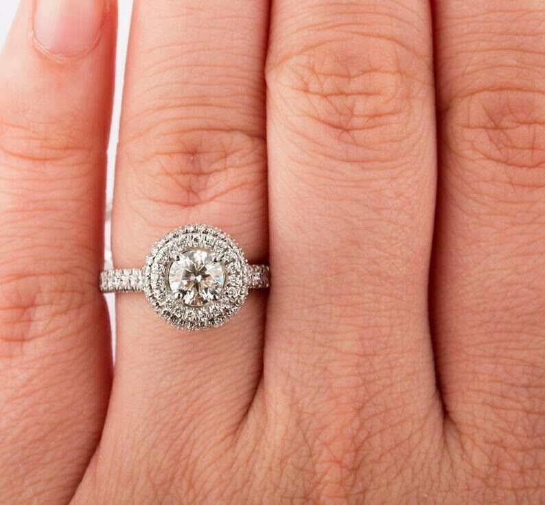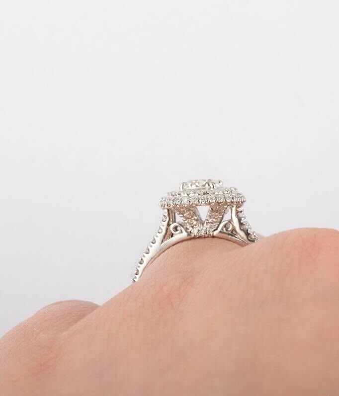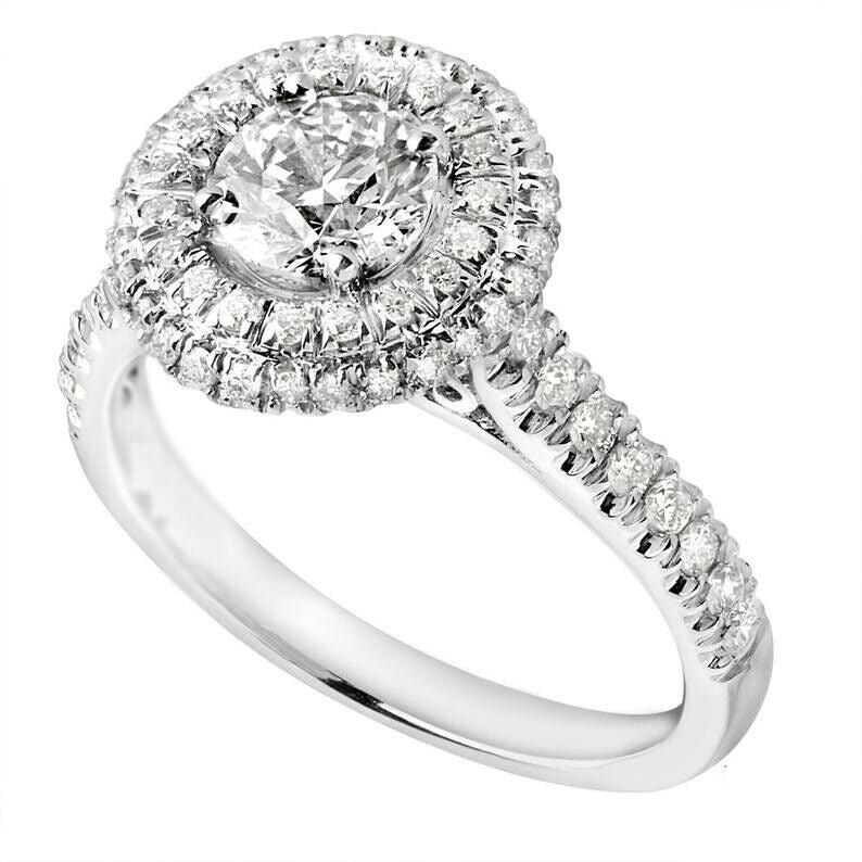 2.5ct Round Cut Diamond Dual Halo Solitaire with Accent Ring 14k White Gold Over