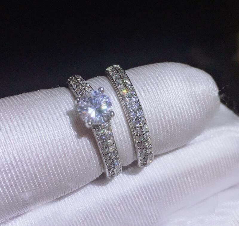 2.5ct Round Cut Diamond Engagement Ring 14k White Gold Finish Bridal Set Women