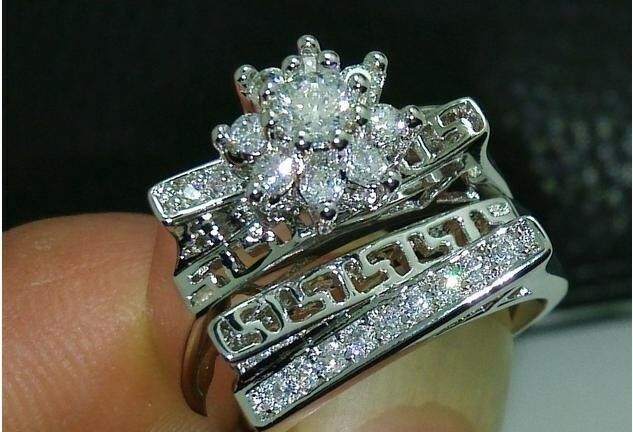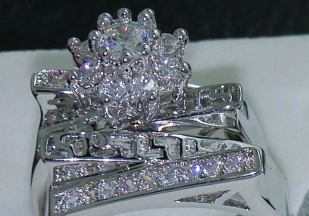 2.5ct Round Cut Diamond Engagement Ring 14k White Gold Finish Floral Bridal Set