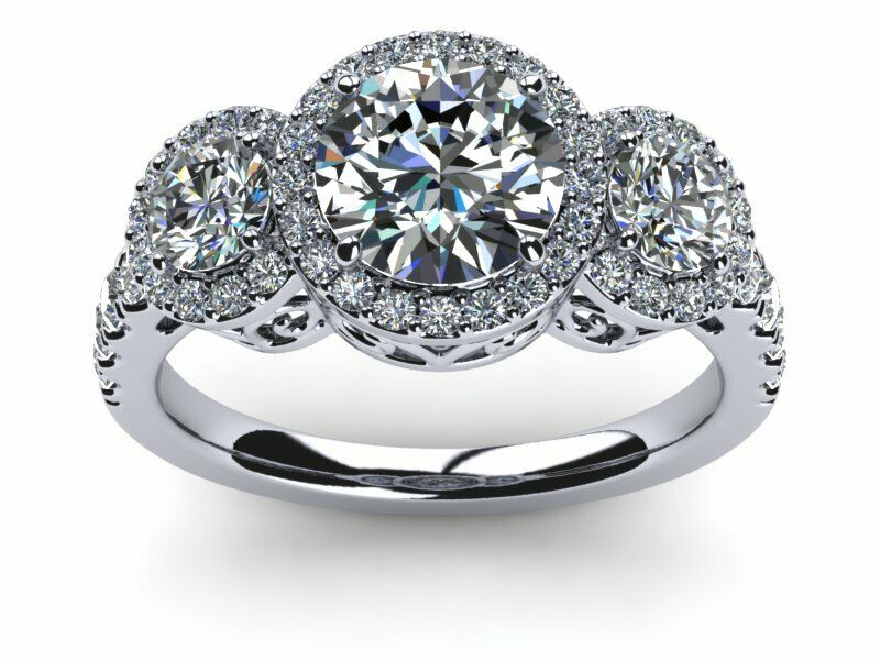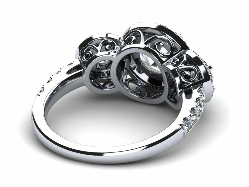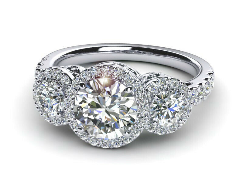 2.5ct Round Cut Diamond Engagement Ring 14k White Gold Finish Halo Three Stone