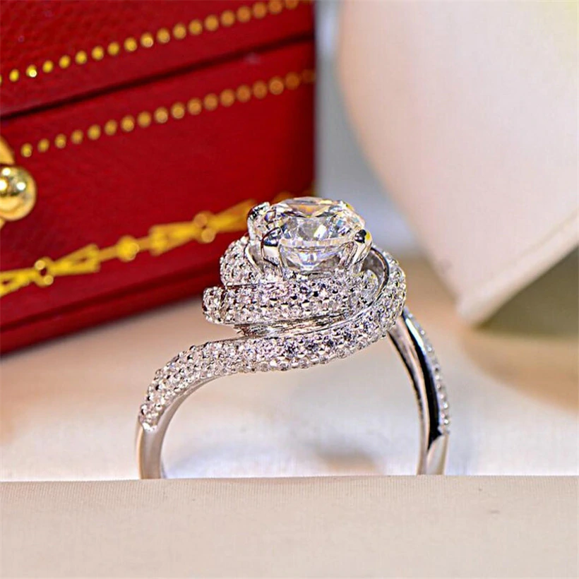 2.5ct Round Cut Diamond Engagement Ring 14k White Gold Finish Swirl Twist Design