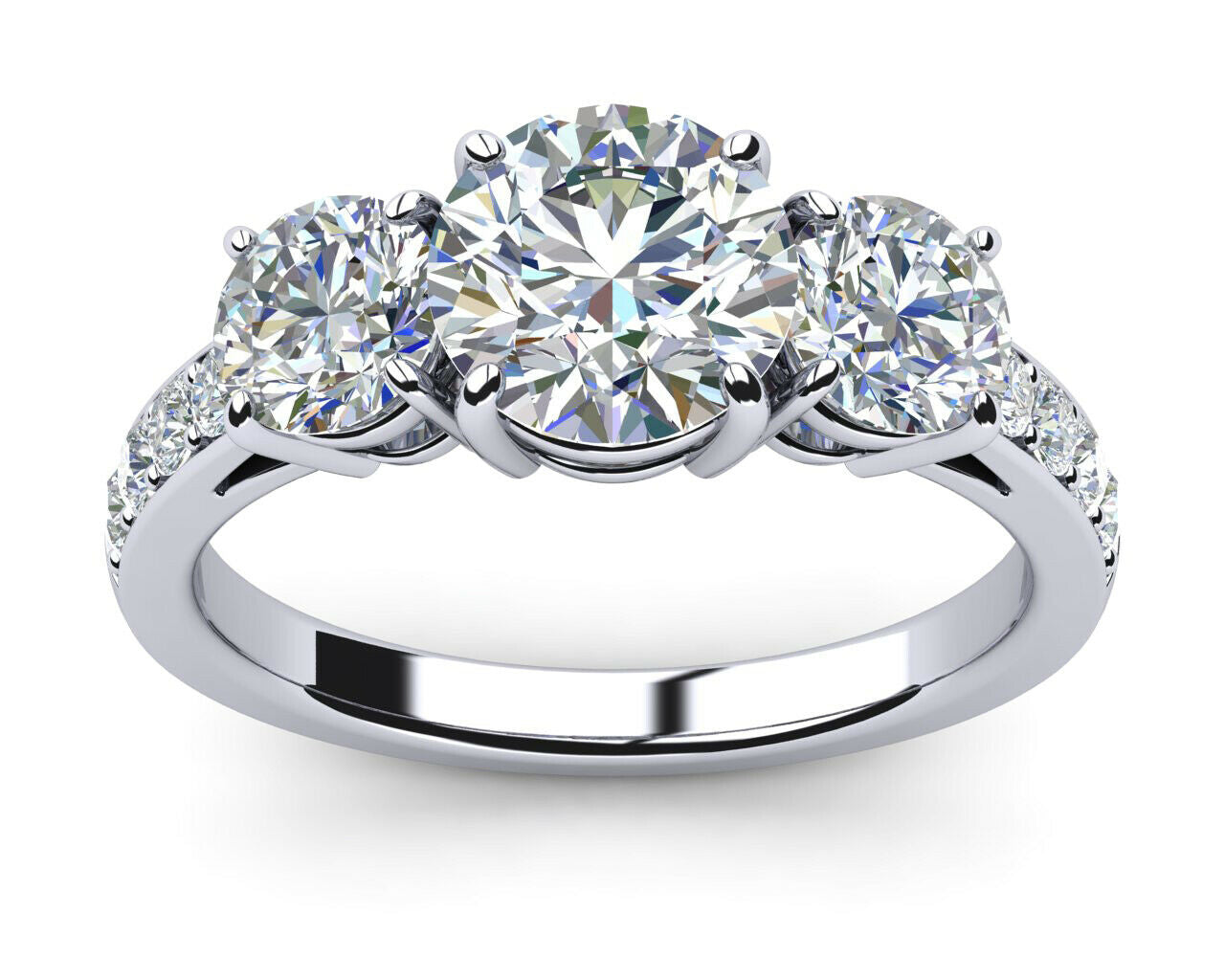 2.5ct Round Cut Diamond Engagement Ring 14k White Gold Finish Trilogy Solitaire